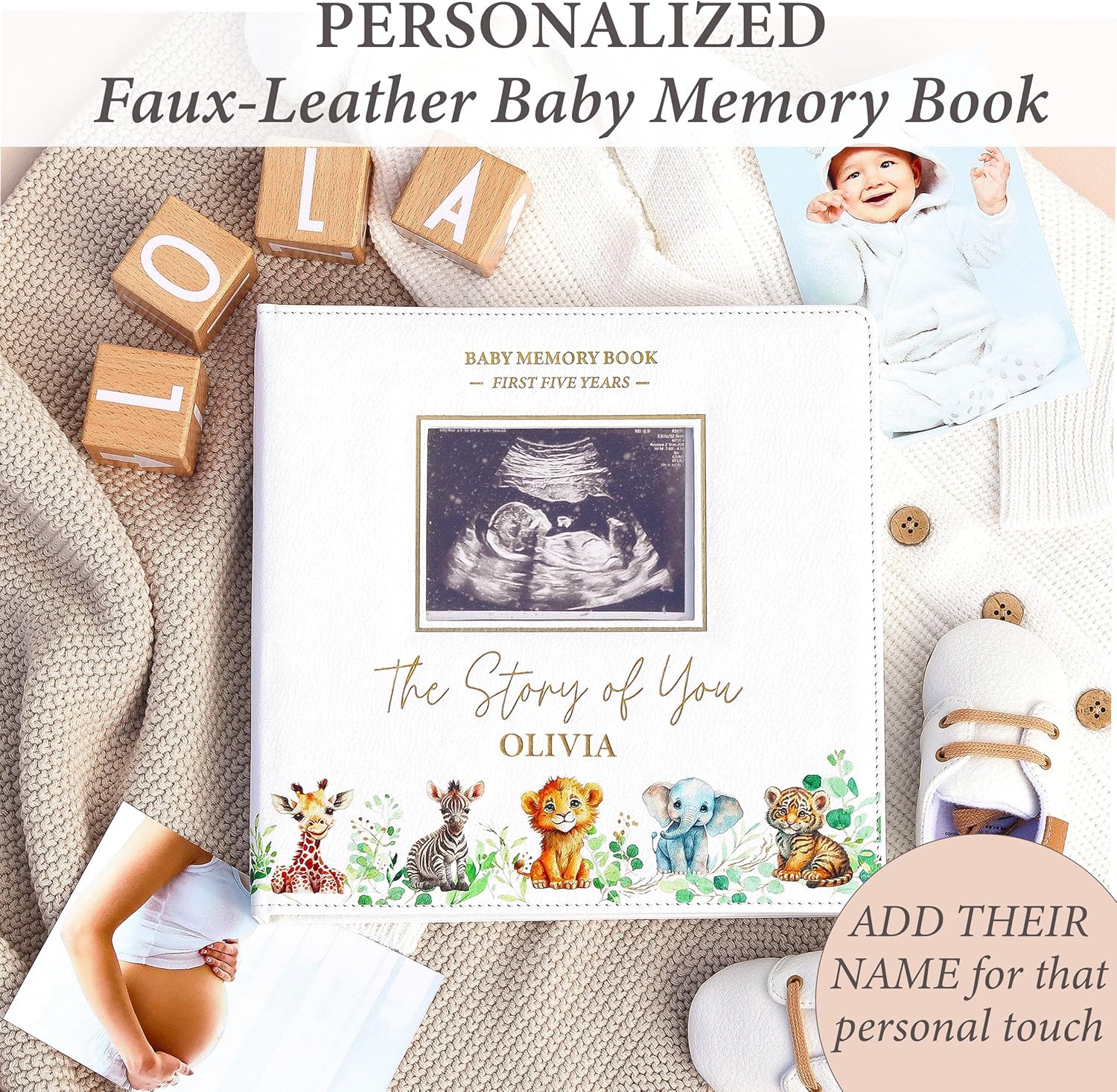 PERSONALIZED Keepsake Baby Memory Book for Baby Boy or Girl – Timeless Baby First 5 Year Baby Book – A Milestone Book to Record Every Event from Birth to Age 5 – Gender Neutral Baby Journal Scrapbook Photo Album