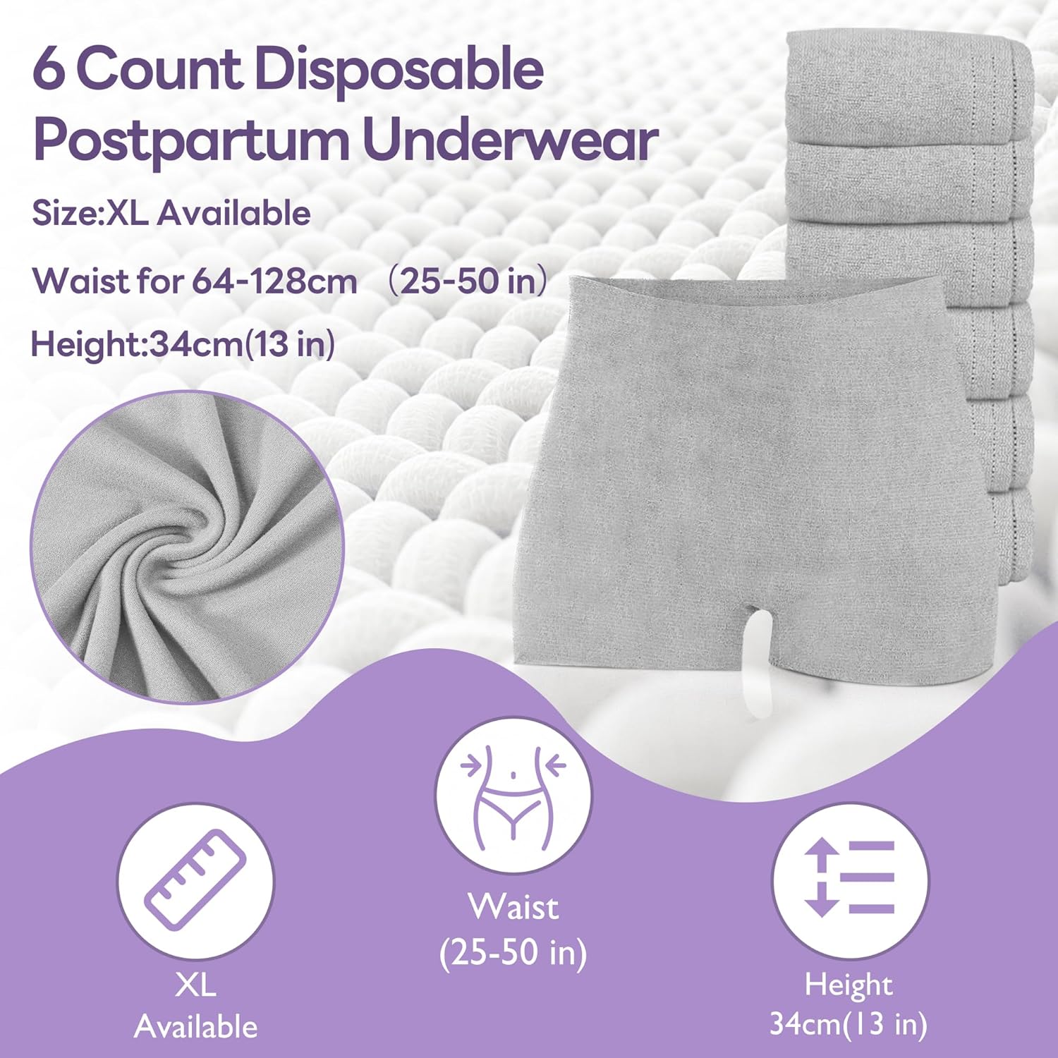 COMPREHENSIVE CARE FOR MOM POSTPARTUM ESSENTIALS: Includes 6 pcs XL disposable underwear with 360° absorbency, no leaks, skin-friendly, and stretchy—fits waist 25″–50″, height 13″, roomy for postpartum belly. Comes with 30g 100% lanolin cream to soothe sore nipples and 1 pair of anti-slip grey socks (L: 39–42) for added comfort. Packed in a convenient drawstring canvas bag—easy to carry, making life with your baby simpler and more beautiful.