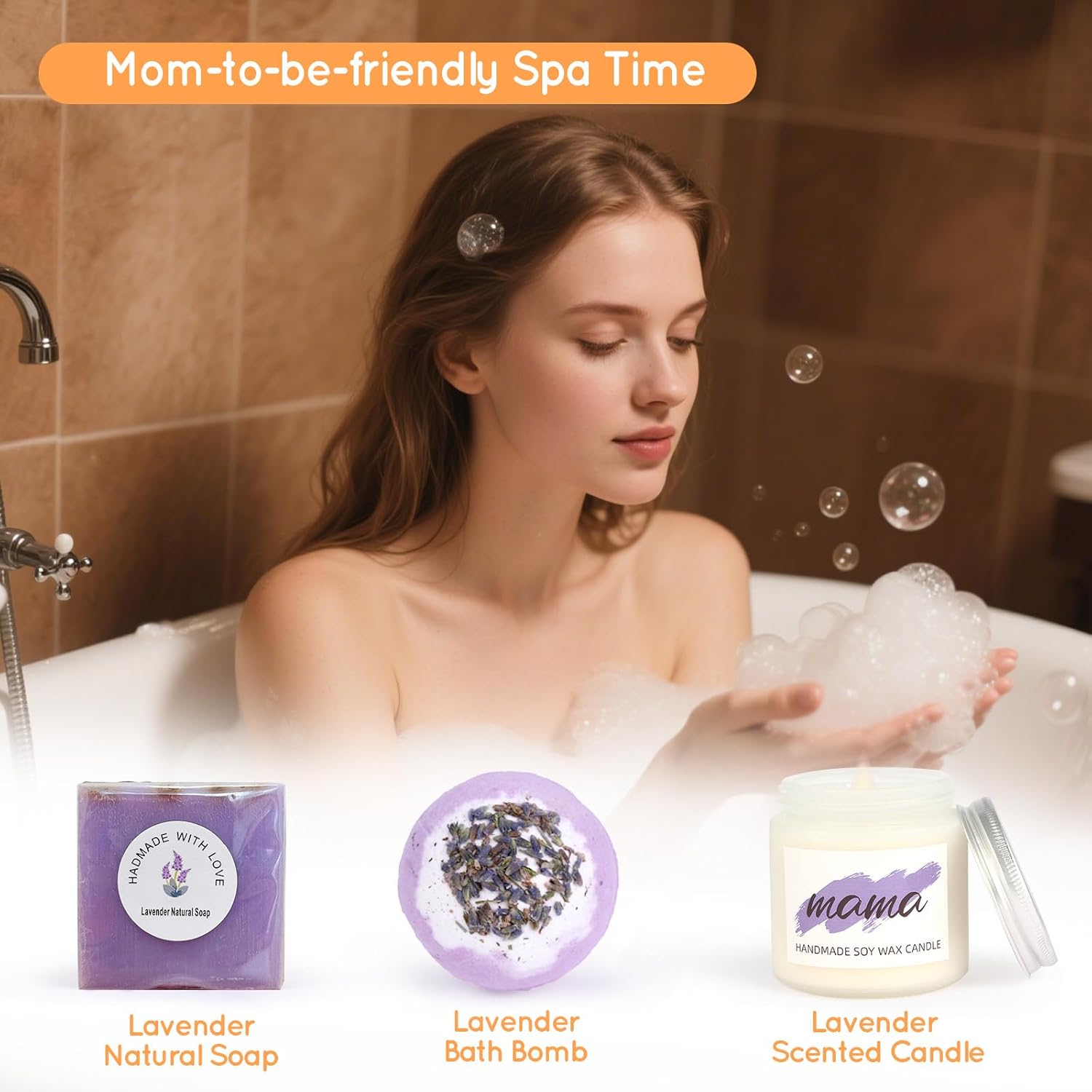 🛁 Lavender Calm—A Ritual of Peace and Rest 💜 Specially chosen for its calming and soothing properties, our lavender trio is designed to help expecting moms unwind both physically and emotionally. The lavender natural soap, lavender bath bomb, and lavender-scented candle work together to ease stress, reduce anxiety, and promote deeper sleep—especially helpful during the second trimester when hormonal shifts and physical discomfort can disturb rest. Let the gentle floral aroma transform ordinary moments into calming rituals of self-care.