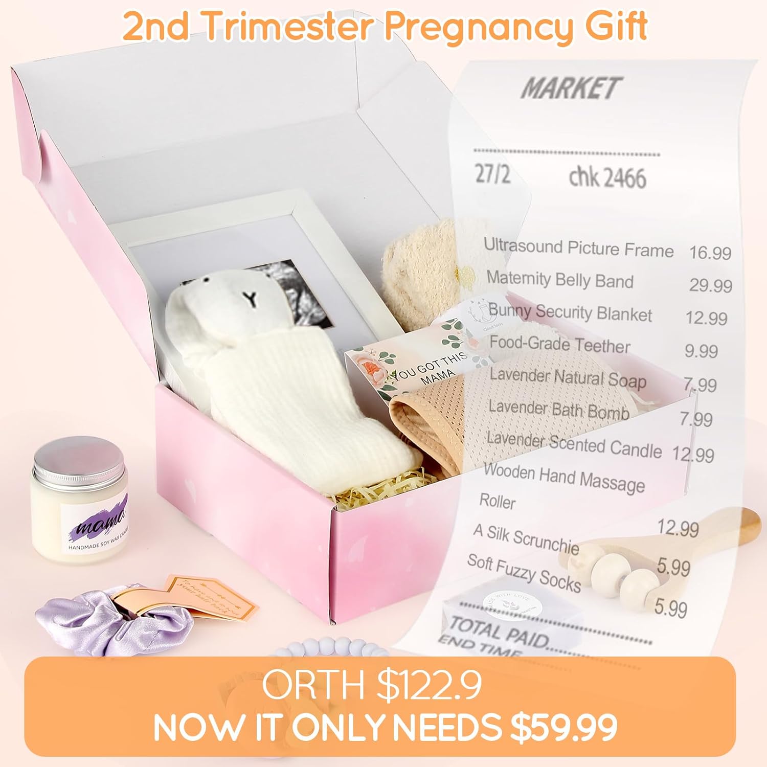 👶 A Thoughtful Collection of 2nd Trimester Essentials 💝 Our 2nd Trimester Pregnancy Gift Box is lovingly curated to support comfort, connection, and care during this special stage. Inside you’ll find pregnancy must haves: an Ultrasound Picture Frame, Maternity Belly Band, Bunny Security Blanket, Food-Grade Teether, Lavender Natural Soap, Lavender Bath Bomb, Lavender Scented Candle , Wooden Hand Massage Roller, A Silk Scrunchie & Soft Fuzzy Socks—each item selected to soothe, support, and uplift moms-to-be as their journey continues.