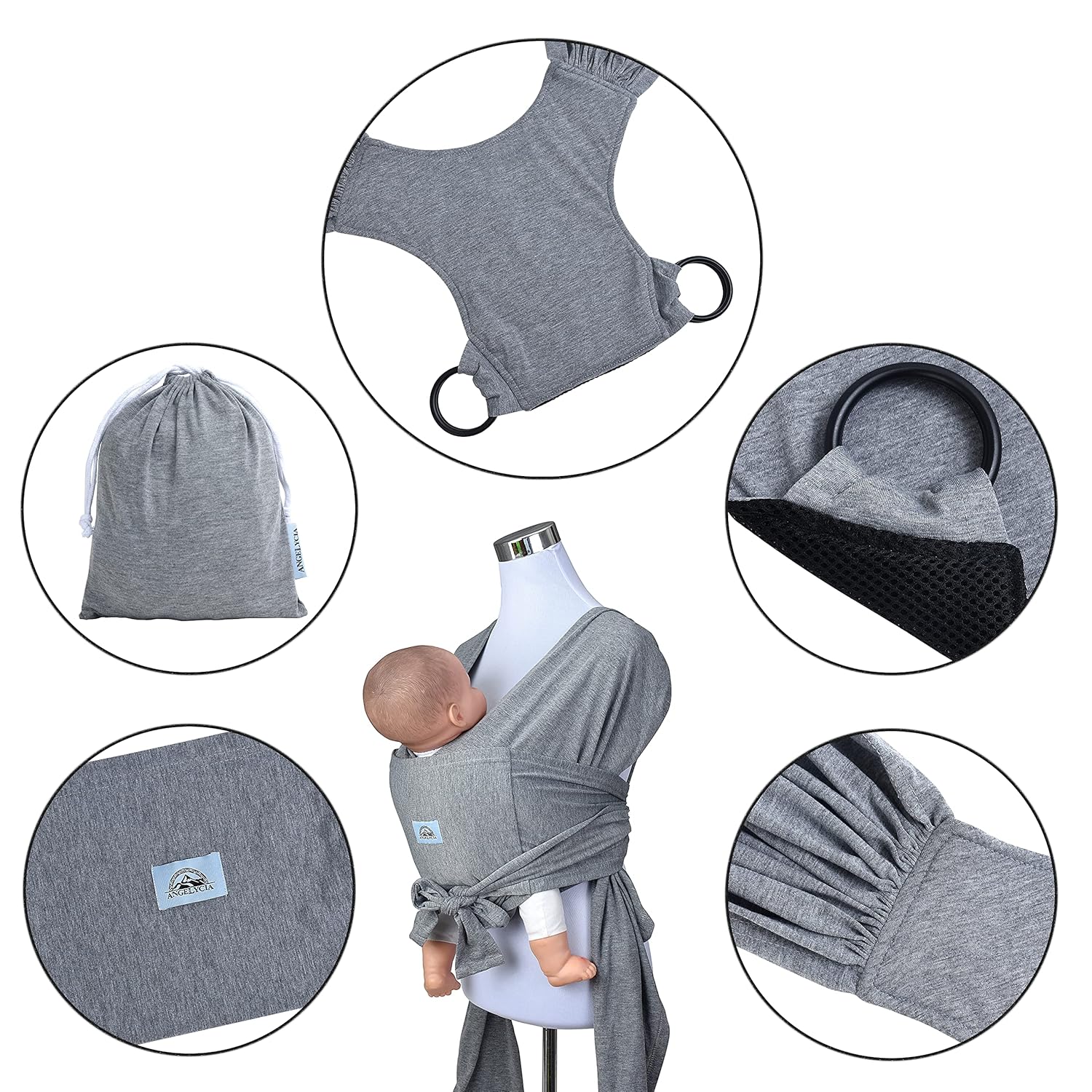 STRETCHY, SOFT, BREATHABLE FABRIC- 95% Cotton and 5% Spandex contents help baby carrier wrap the baby delicately and perfectly, maintain its shape and prevents sagging after usage, also gives durability and ensures the longevity.