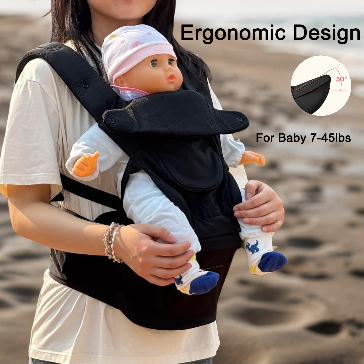 【Ergonomic & Multi-Position Design】Supports 7-45 lbs with different carrying options. Adjustable padded shoulder straps and waist belt distribute weight evenly, reducing back strain for parents. Ideal for breastfeeding and bonding time.