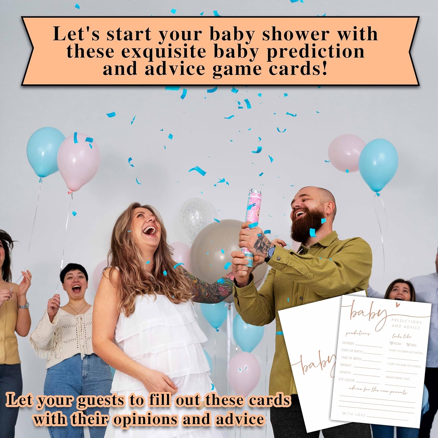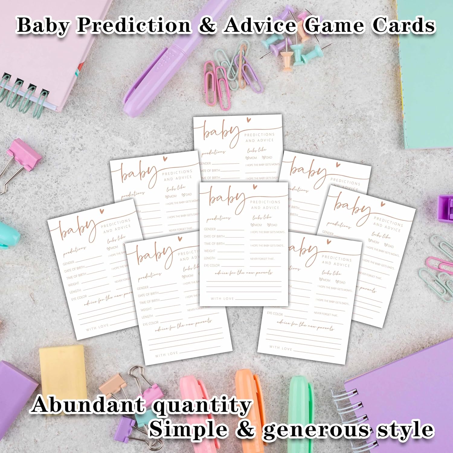 【Premium Material】Baby Prediction and Advice Game Cards are made from sturdy and durable materials, so that you will get a smooth writing experience.