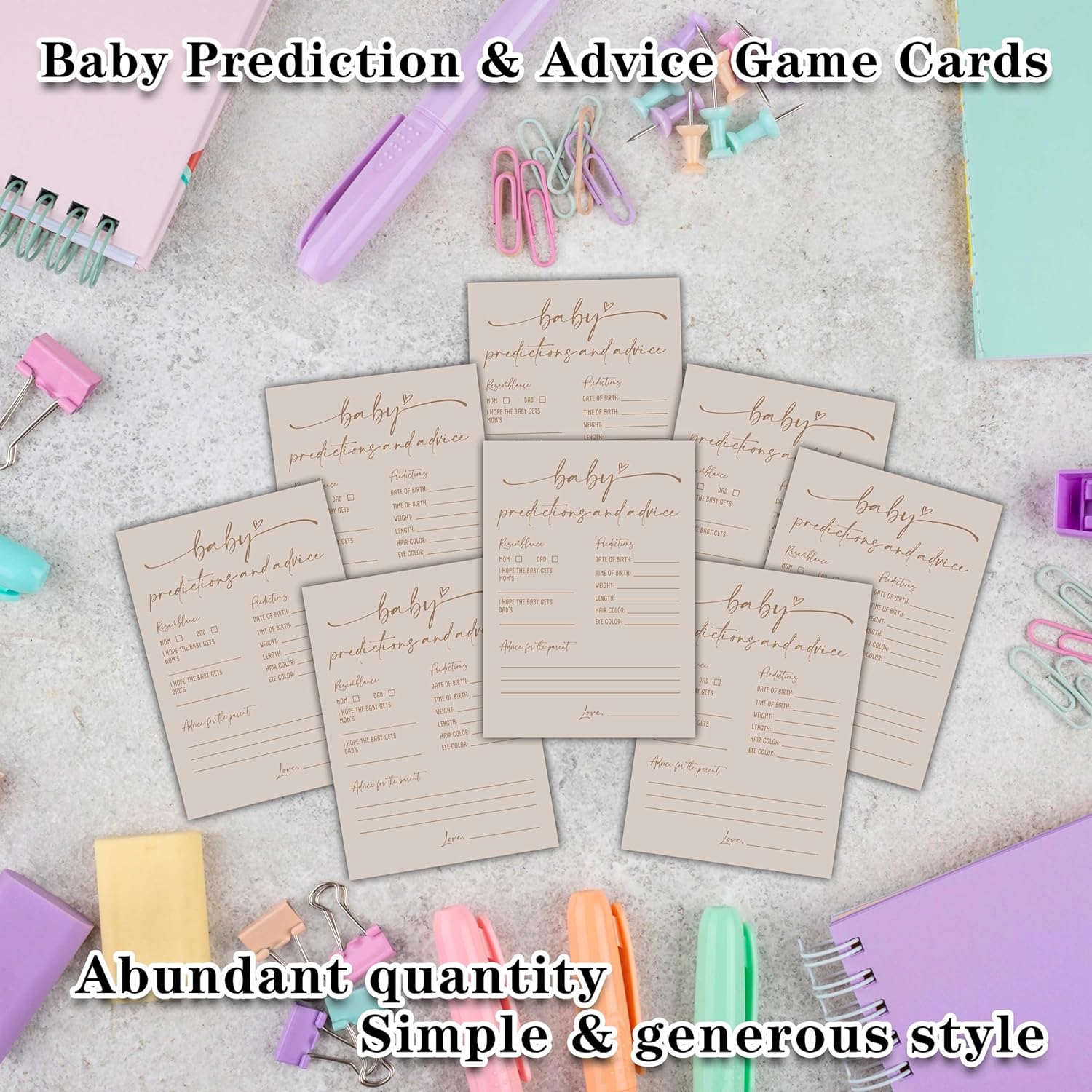 【Premium Material】Baby Prediction and Advice Game Cards are made from sturdy and durable materials, so that you will get a smooth writing experience.