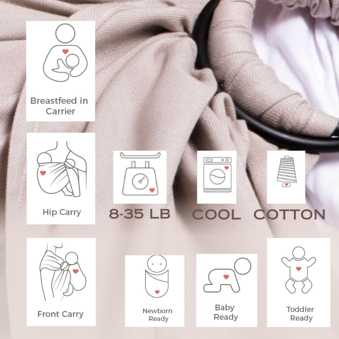 👶 Our sling wrap baby carrier is a strong and secure sling ring, woven baby wrap to use as newborn baby carrier sling or toddler carrier sling. This nursing wrap for baby is a breathable cloth baby carrier