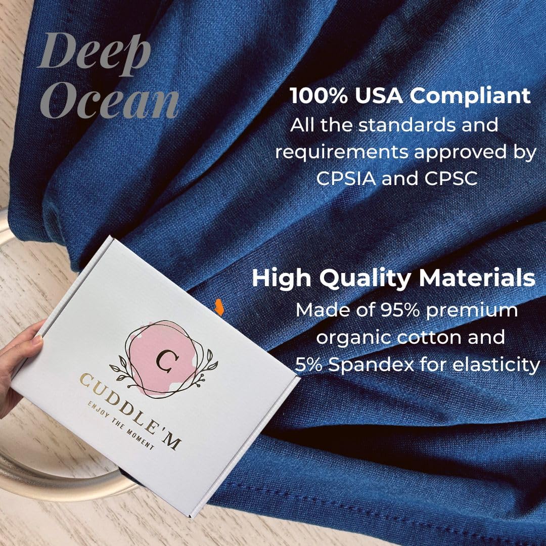 Cuddle’m wraps are all made of 95% Natural Cotton and 5% Spandex to create elasticity