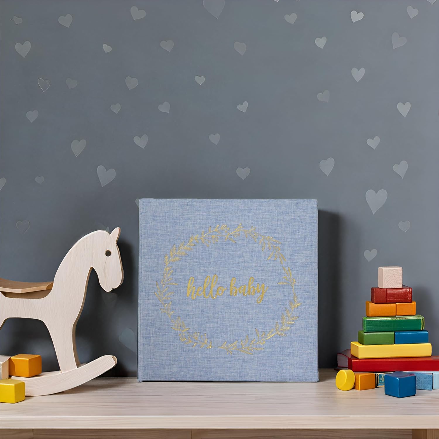 Classic Linen Baby Book: This soft linen cover gives a luxurious texture to this classic keepsake book. The elegant, debossed print reads “hello baby” adding a timeless touch. This blue baby book is the perfect choice for baby boy.