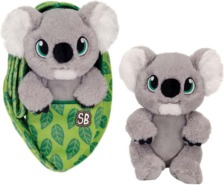Welcome the adorable Koala Swaddle Baby Plush to your nursery, a soft and squishy 9.5.5″ baby koala plushie perfect for kids, toddlers, and baby showers. This charming set features a cuddly koala with grey fur, a large black nose, white tufts in its ears, and big green eyes that make it irresistibly cute. The plushie comes with a removable leaf-patterned sling, perfect for interactive play or display. Whether swaddled in the sling or cuddled independently, this koala plush is sure to delight both kids and adults alike.