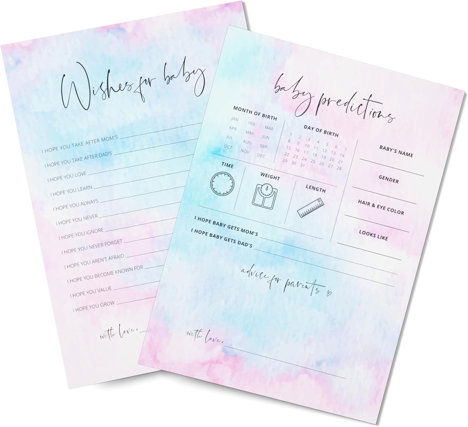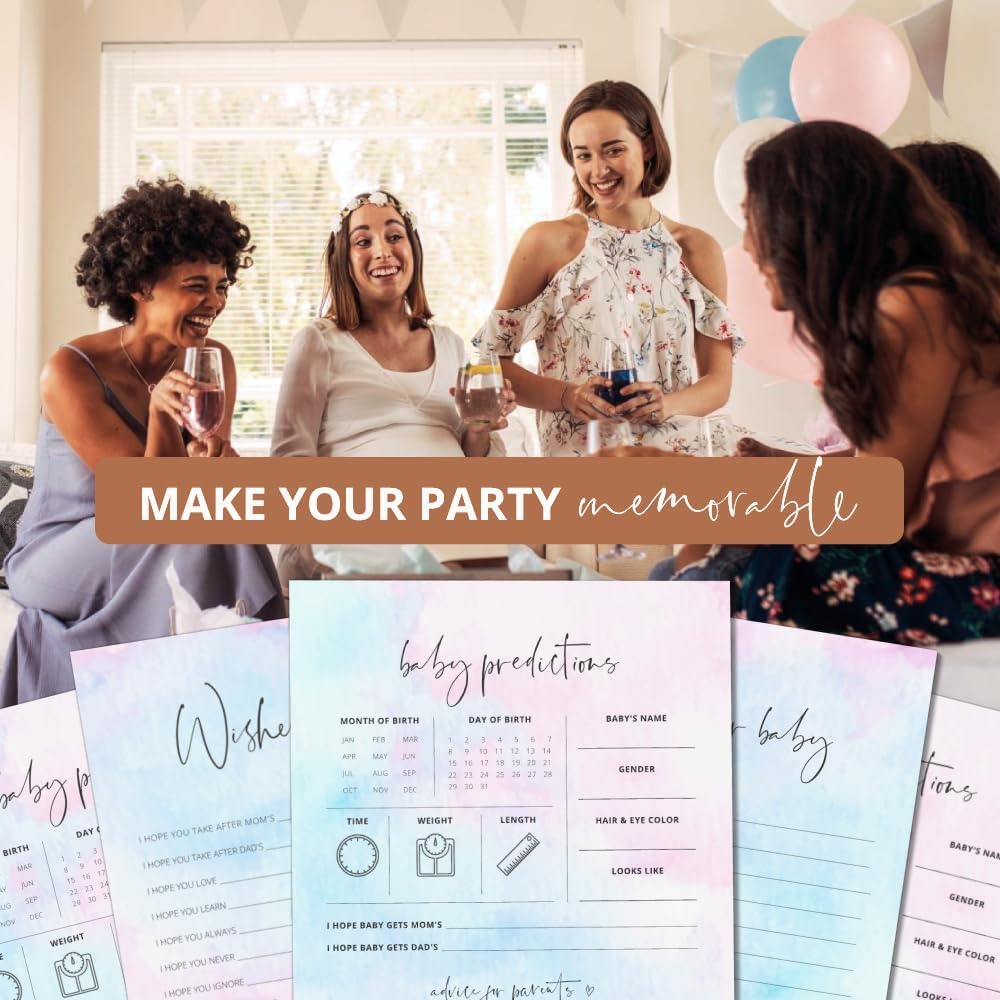 EASY TO USE: Make planning your baby shower or gender reveal event simple with the ready to use Baby Predictions and Advice + Wishes for Baby cards.