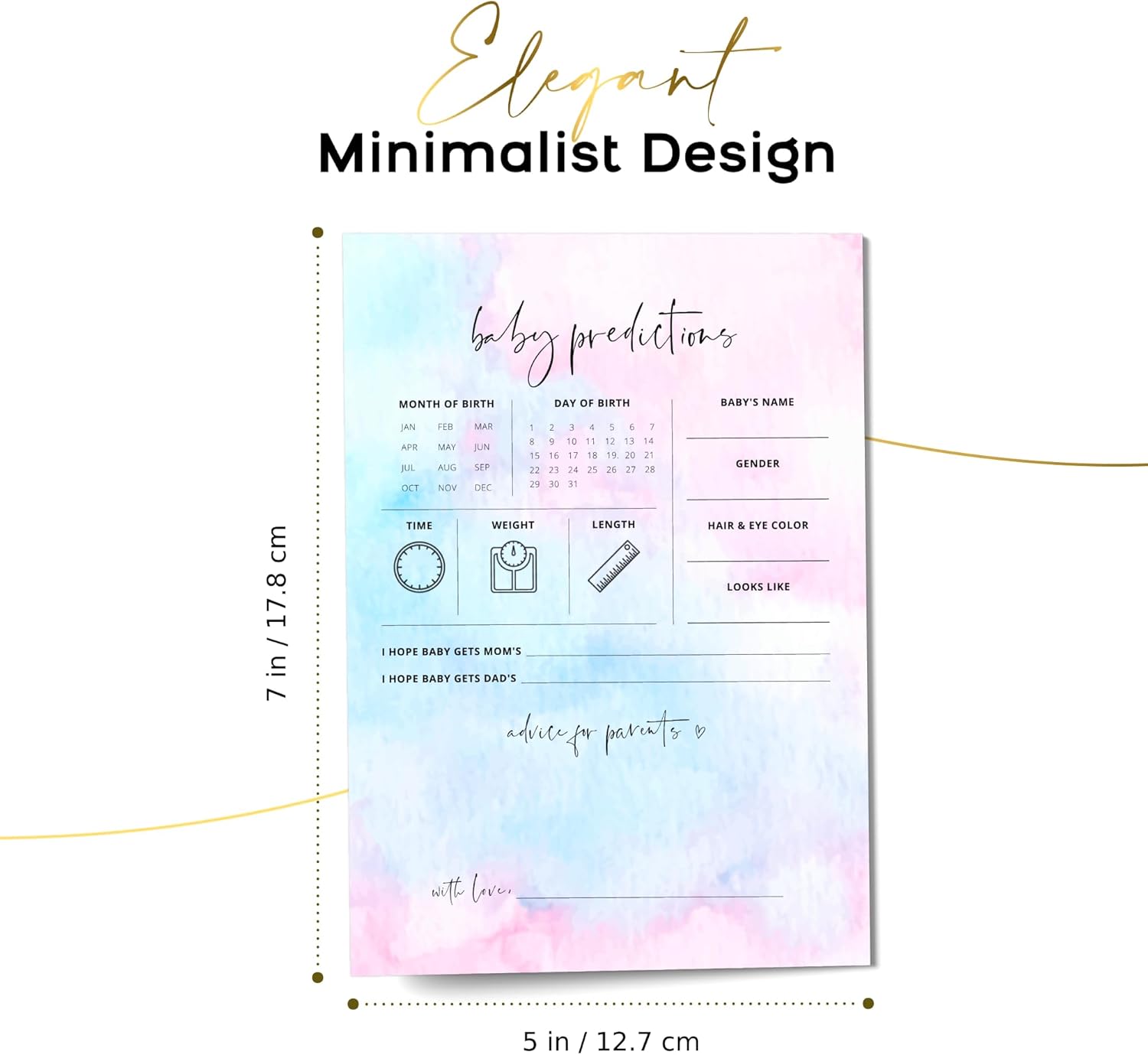 Large Baby Predictions & Advice Cards (50 Pack), Gender Reveal Games, Baby Shower Games, Advice for New Parents to Be – Double-Sided Cards – Minimalist