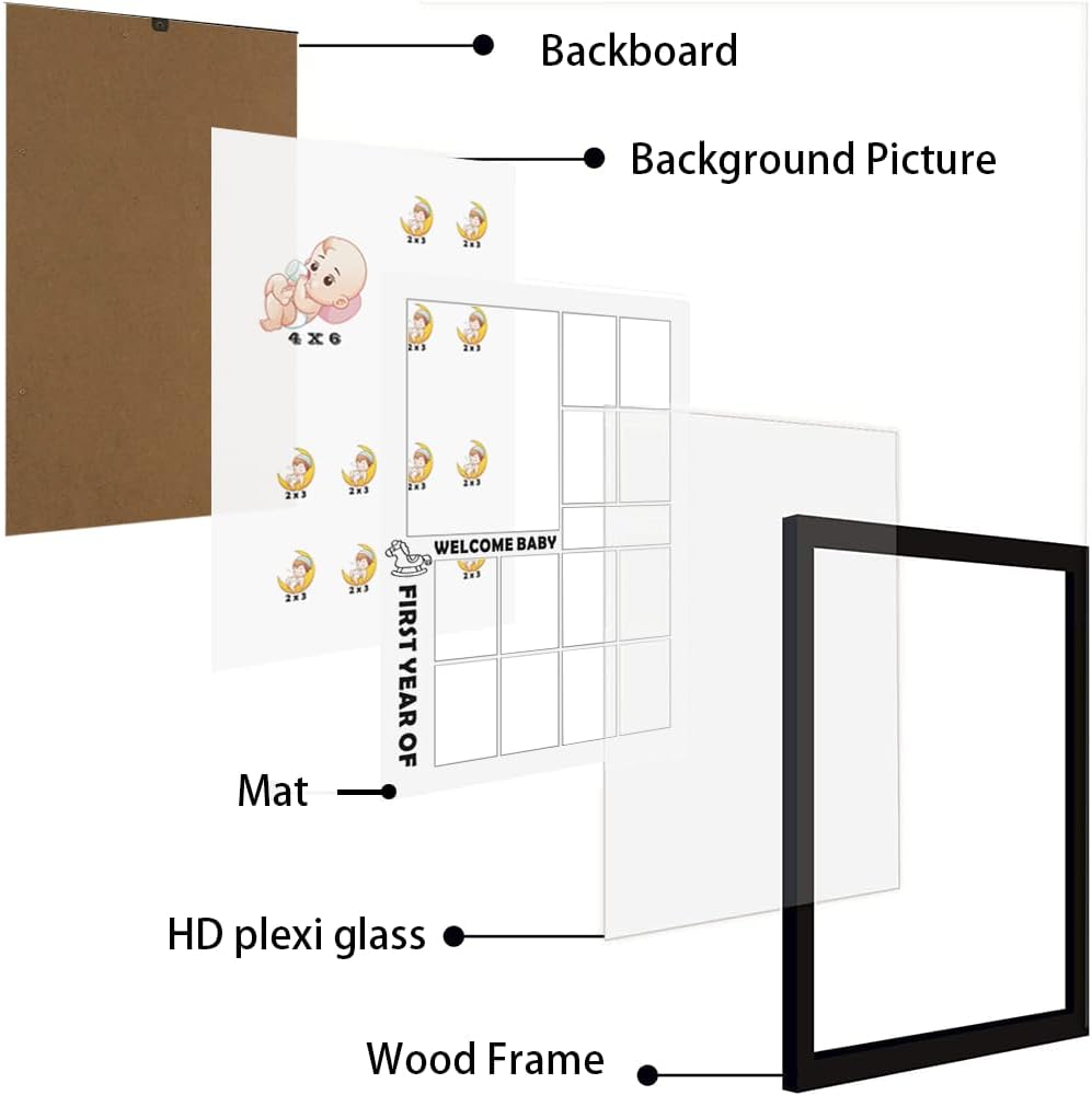 Photo Size: Features 12 slots 4.5 x 7cm for 2″ x 3″ photos, plus a larger 11.5 x 16.5cm slot for a 5″ x 7″ special one-year photo, allowing you to showcase the entire year at a glance. Can trimming the photo to fit the size of the frame.