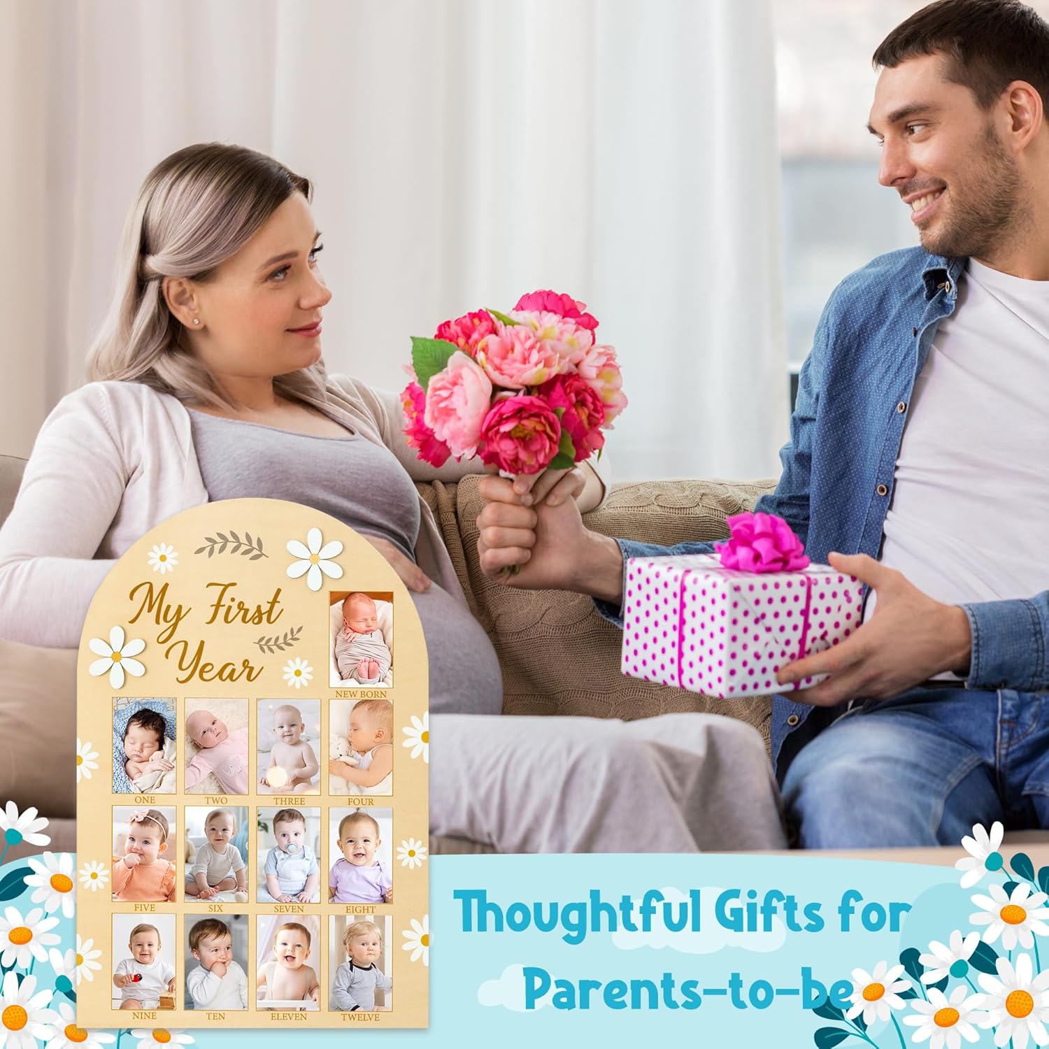 Gift for Parents-to-be: Give this newborn photo wooden board to new parents as an ideal gift choice for a baby shower, baby boy girl first year party, birthday party, Christmas and various other occasions. Decorate your nursery or baby’s birthday party with a priceless piece of their first year.