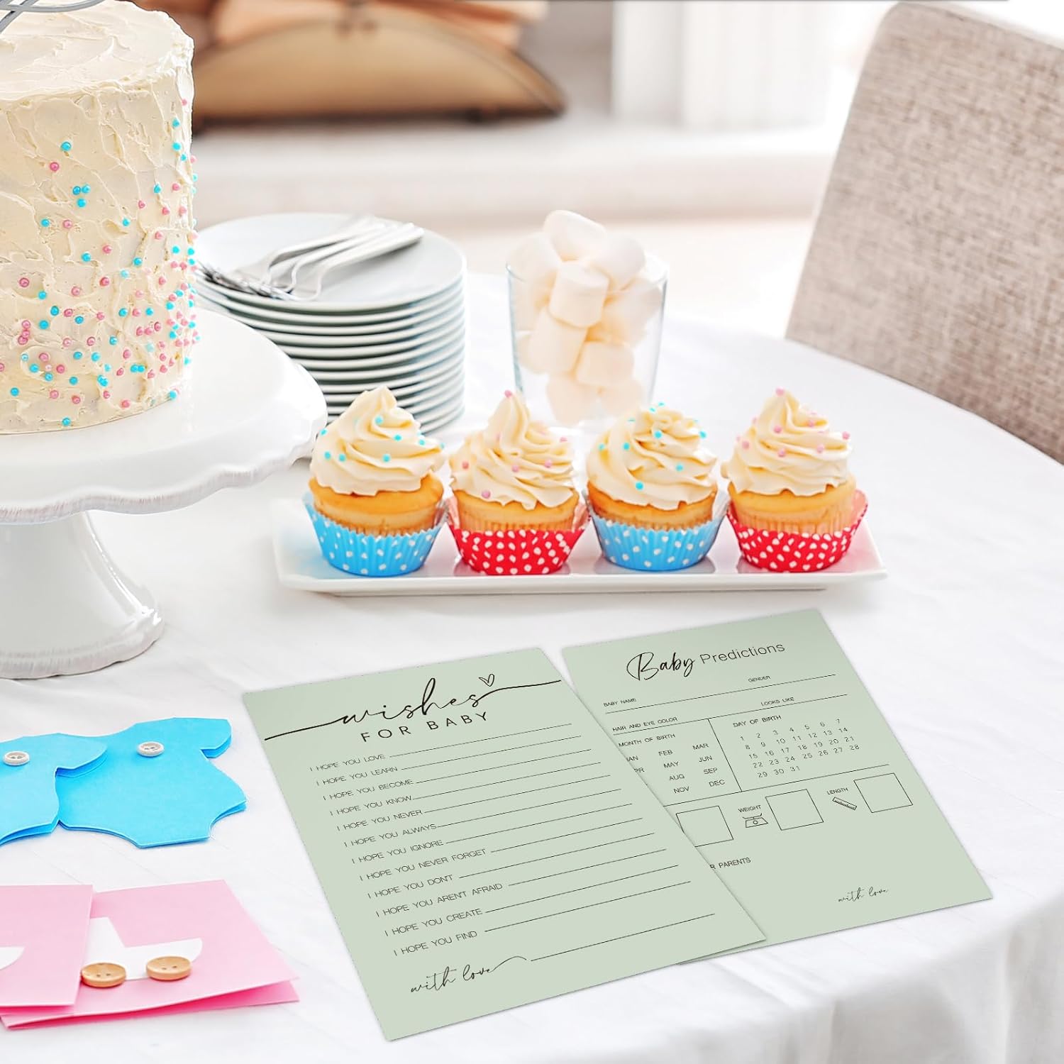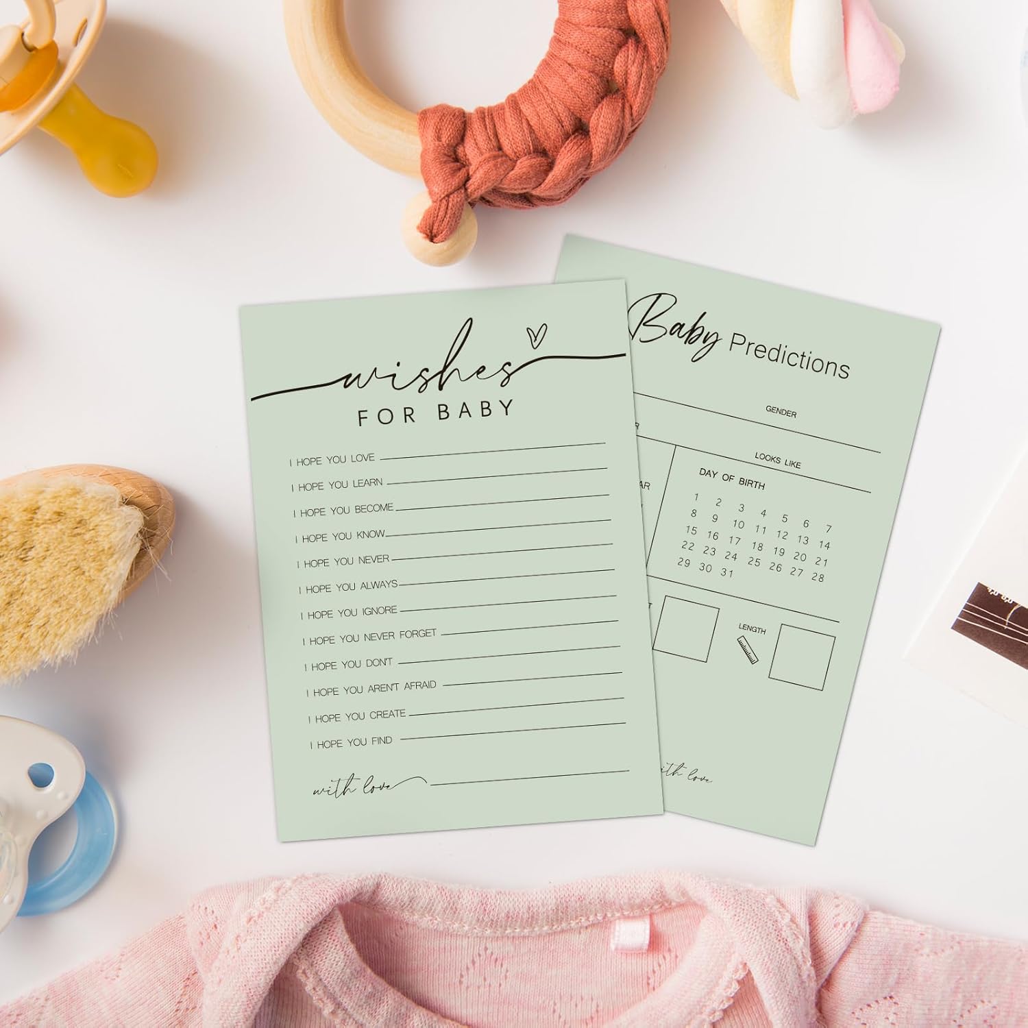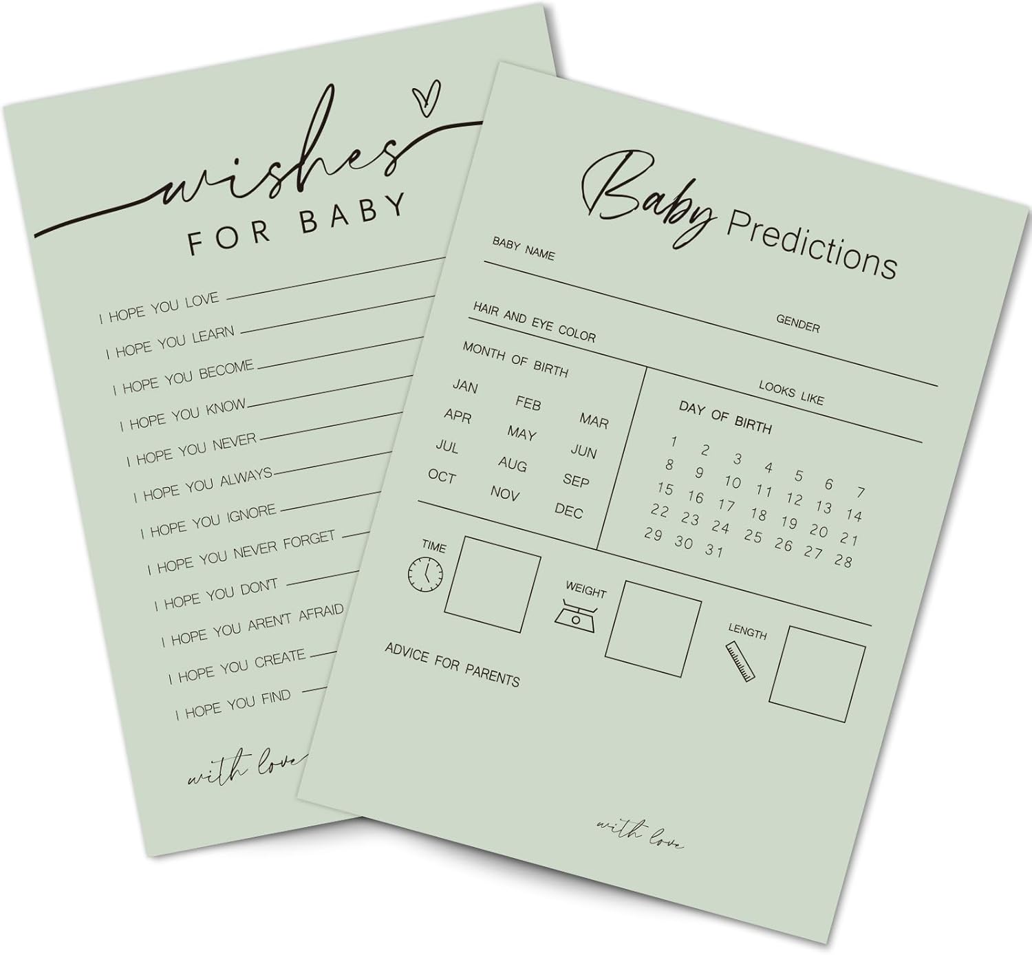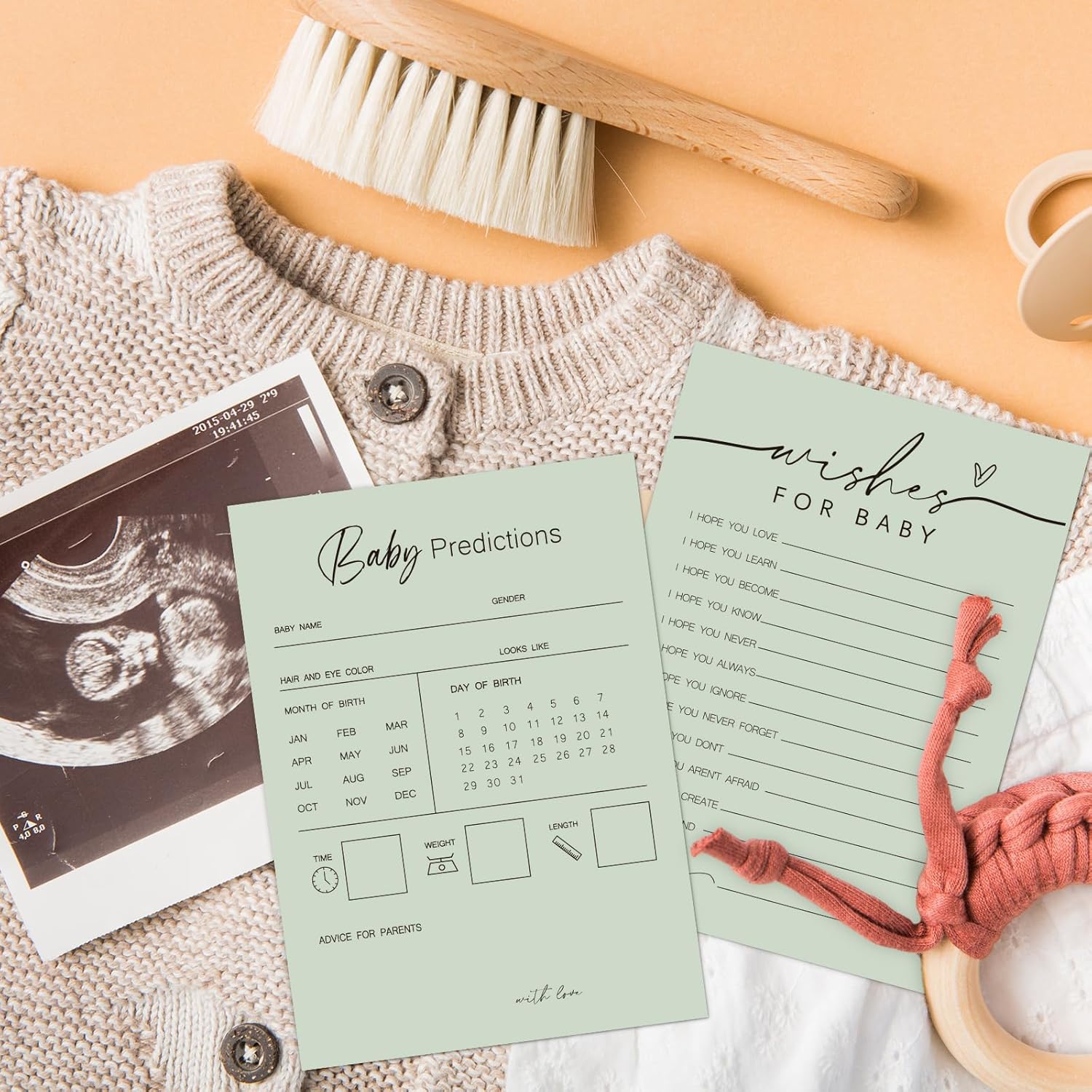 Elegant Design – Our baby predictions and advice cards adopt the minimalist design, completely colored in sage green, pretty and delicate, will greatly increase the fun and pleasant atmosphere.