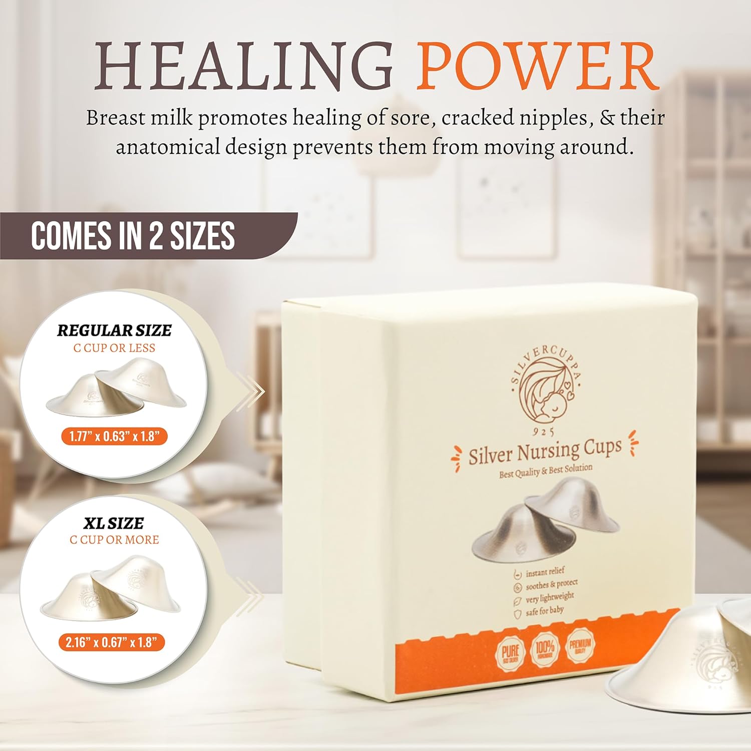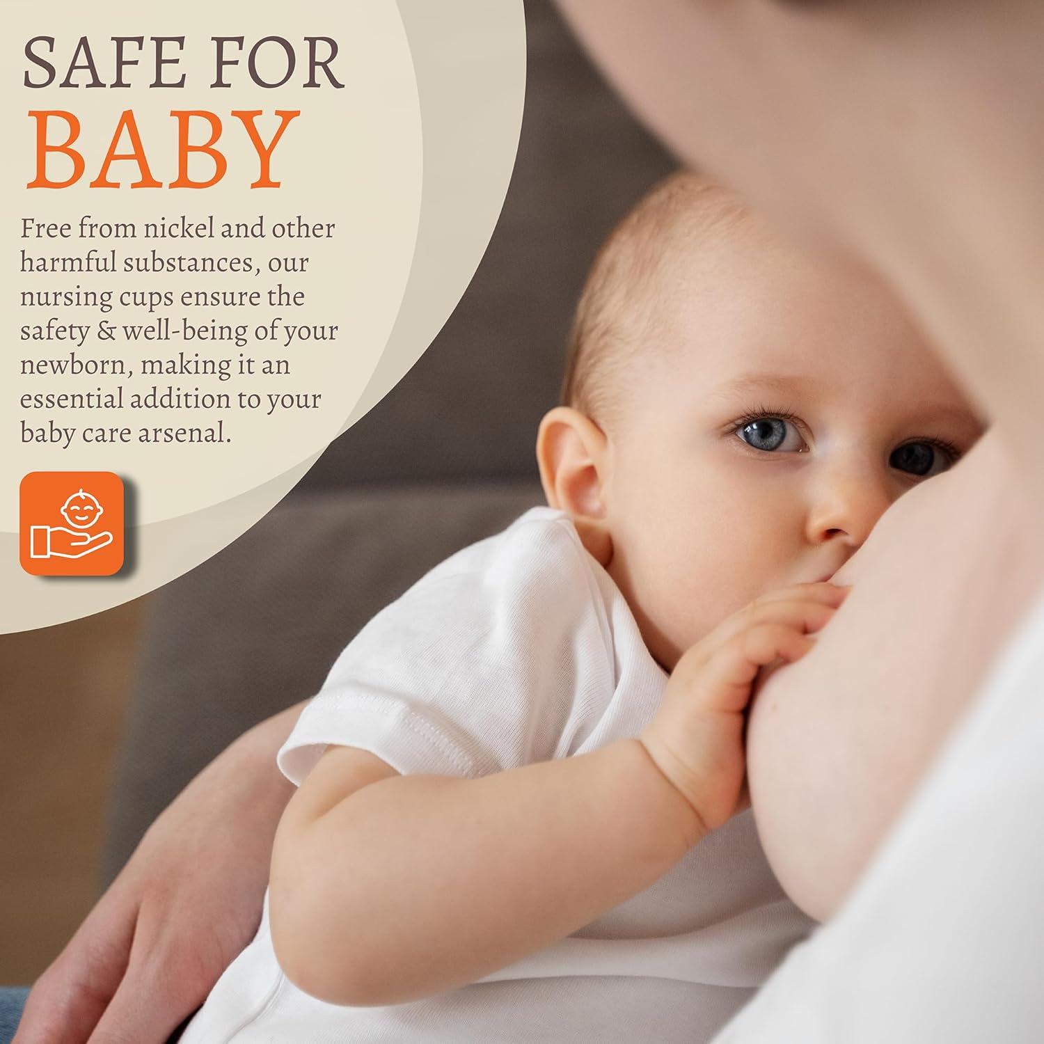 Hypoallergenic and nickel-free, these silver nursing cups provide gentle relief for sore nipples while offering a sustainable alternative to disposable nipple pads.