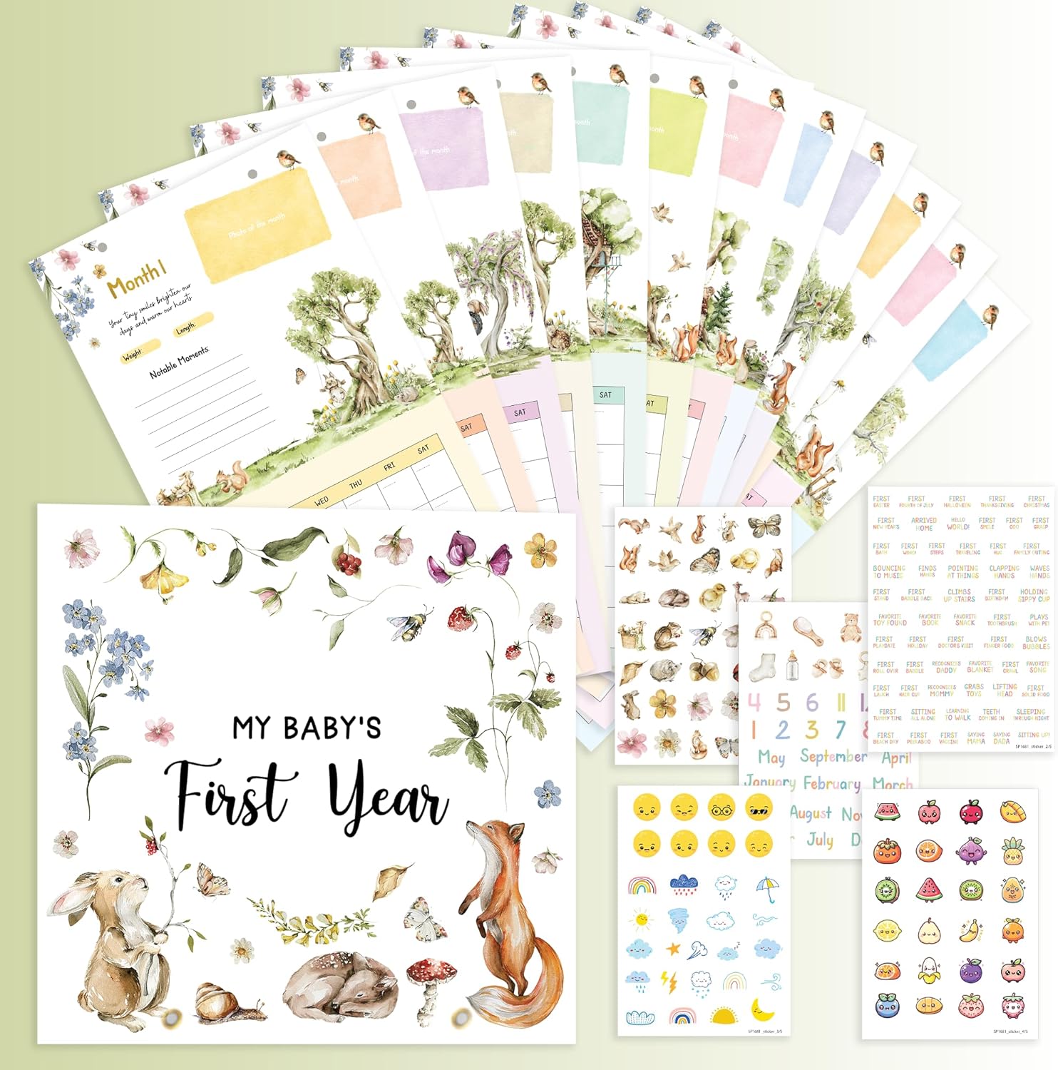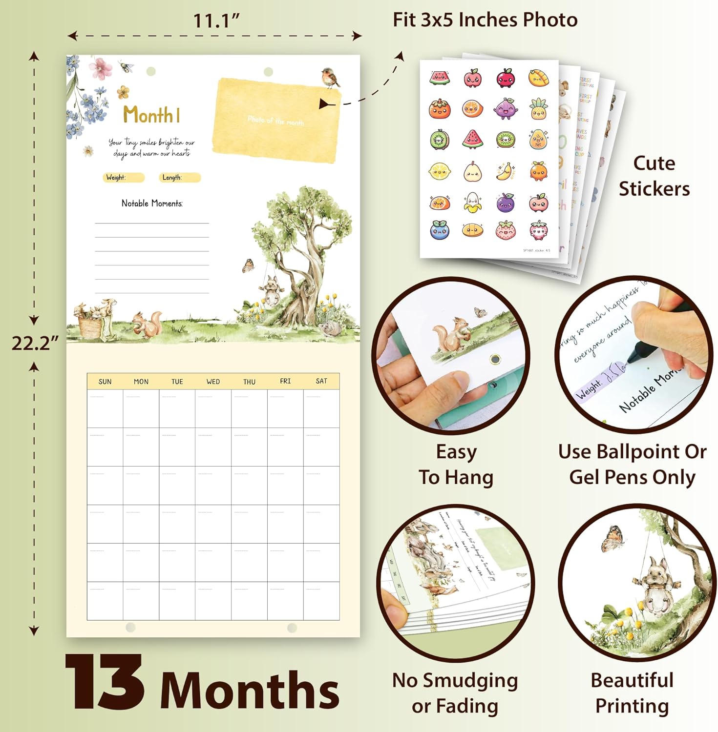 Set includes: This baby calendar first year set comes complete with 12 monthly milestone pages and a charming sheet of matching stickers — making it a perfect baby books first year memory calendar for busy parents who want a quick, meaningful keepsake.