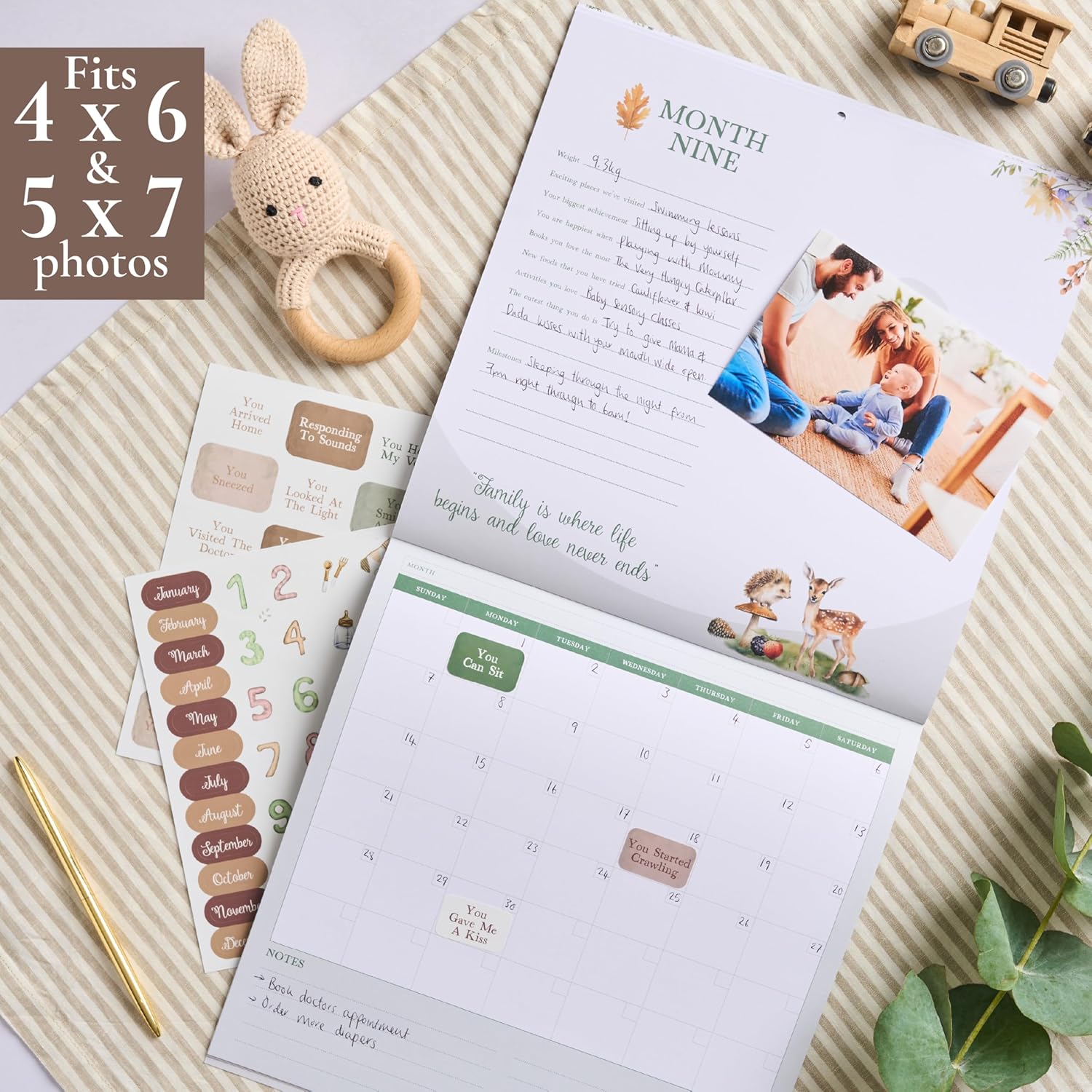Our baby calendars include space for photos and notes, plus over 100 stickers to mark key milestones such as their first smile, their first steps and many more.