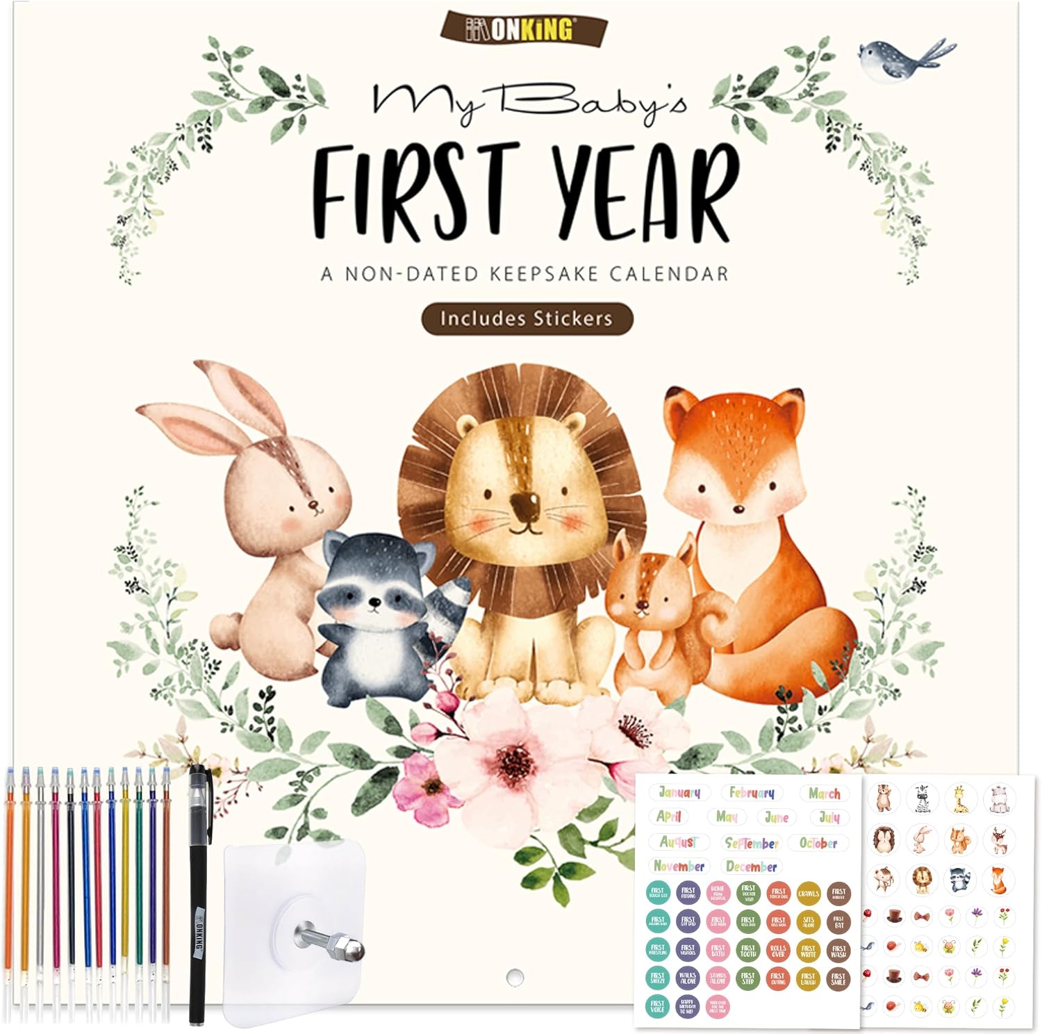 The Monking Baby’s First Year Calendar with Stickers is a thoughtfully designed milestone tracker and memory book that helps you cherish every special moment of your baby’s first year.