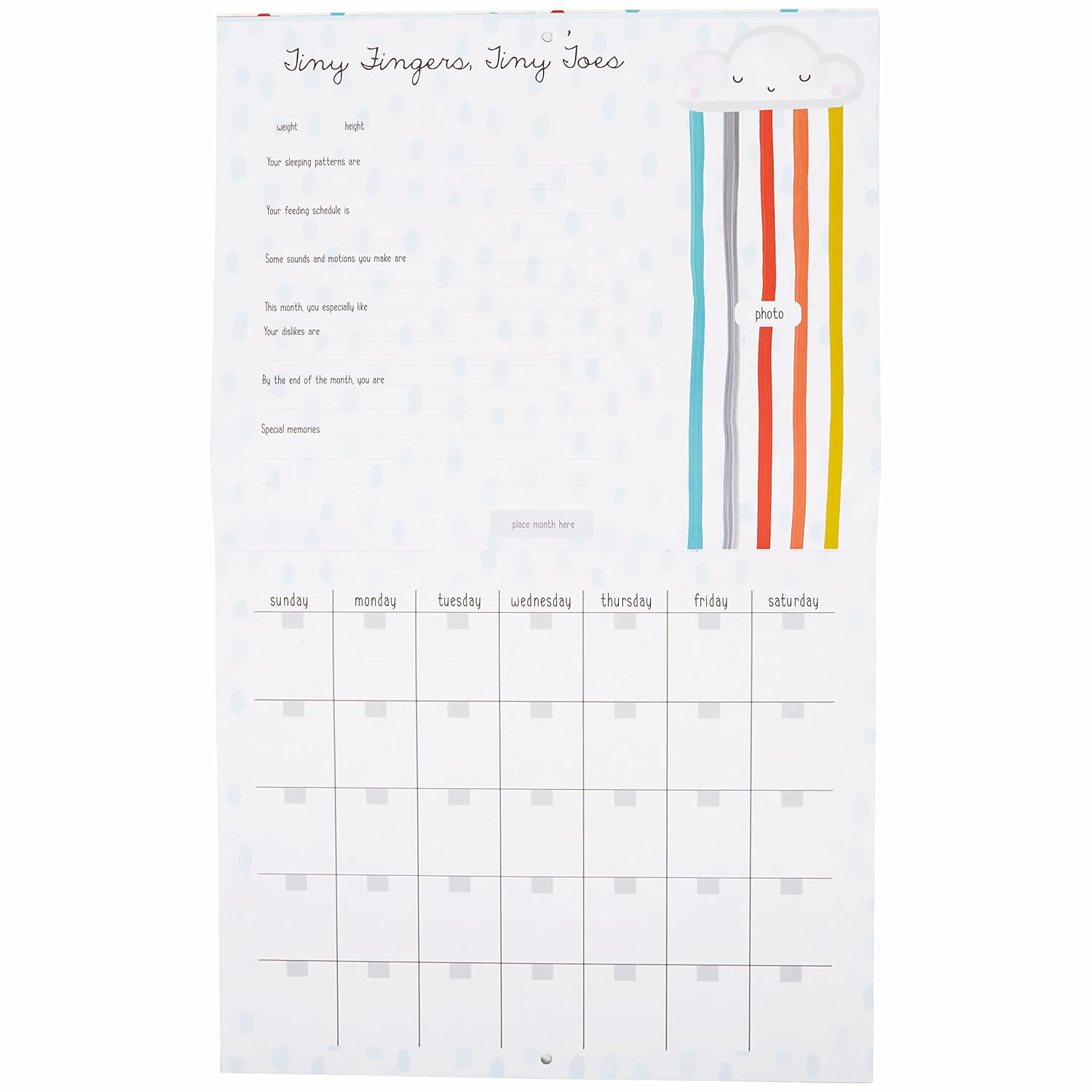 Sunshine, rainbows and dreamy clouds float magically though this unisex calendar by artist Keri Steckler. Our Baby’s first year calendar provides a convenient way to record important events and milestones of baby’s first 12 months. Calendar is made with acid-free, lignin-free paper. Great as a gift for new parents or as a baby shower gift! Package includes (1) baby keepsake calendar with (1) sticker sheet. First year baby calendar with stickers measures 11″ W x 18″ H when open.