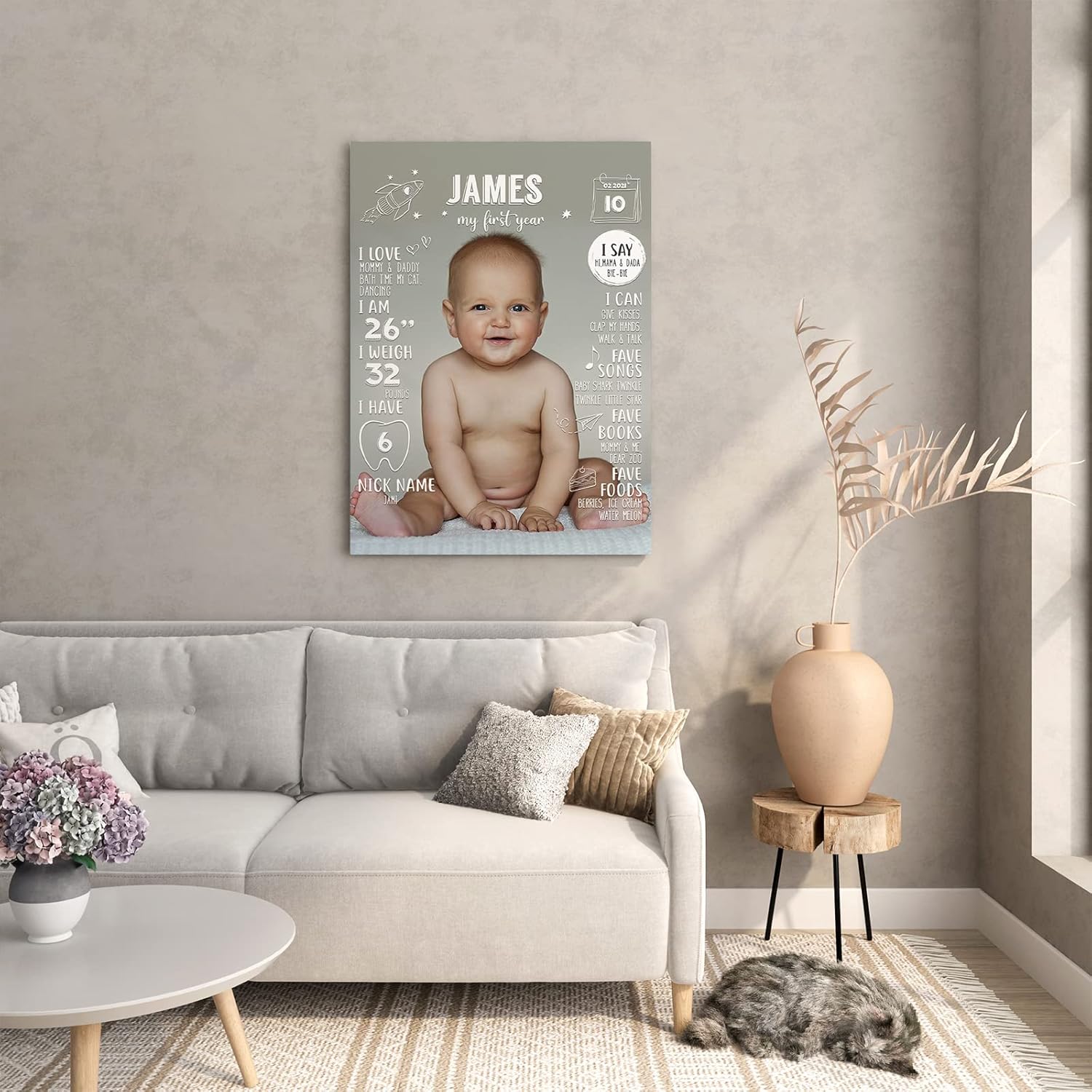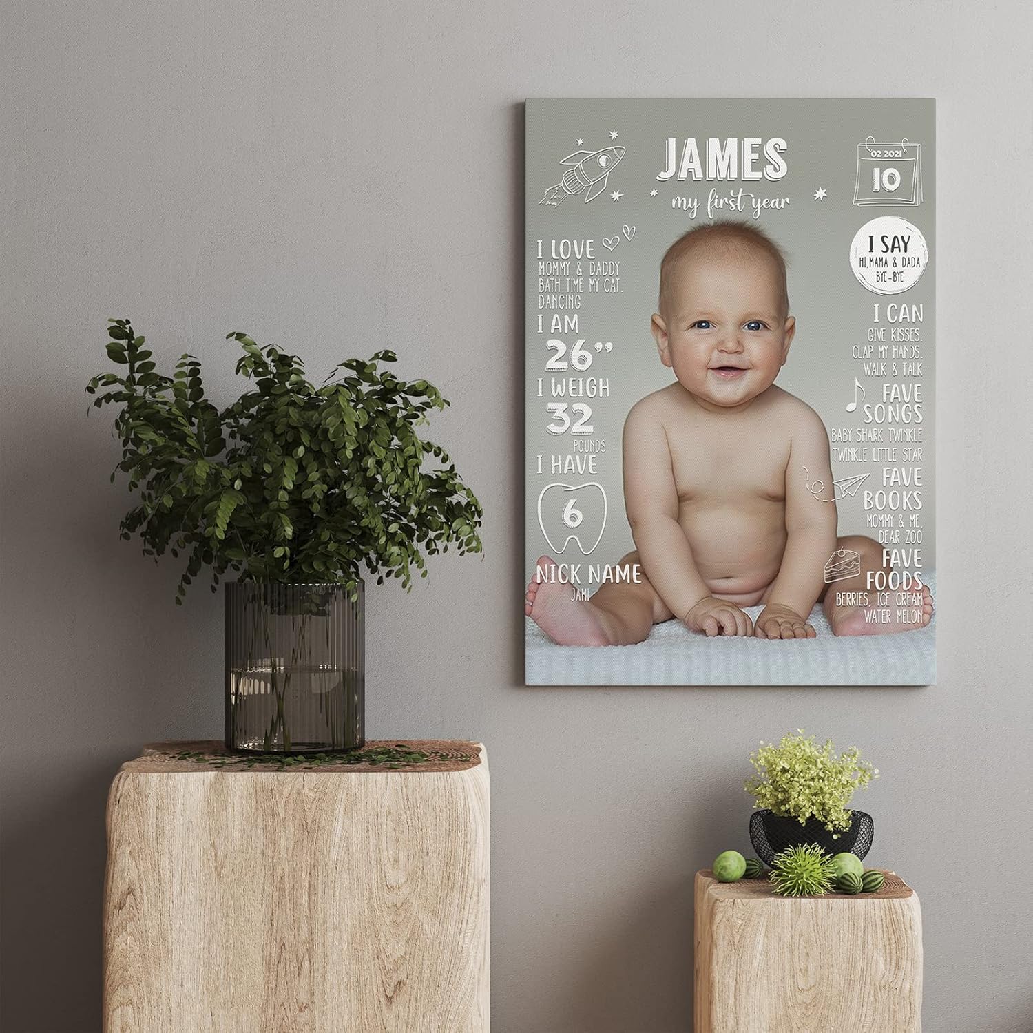 Versatile Decor: Perfect for baby boys and girls, this personalized milestone canvas makes a beautiful addition to your child’s nursery or a unique birthday party decoration, adding a touch of warmth and love to any space.