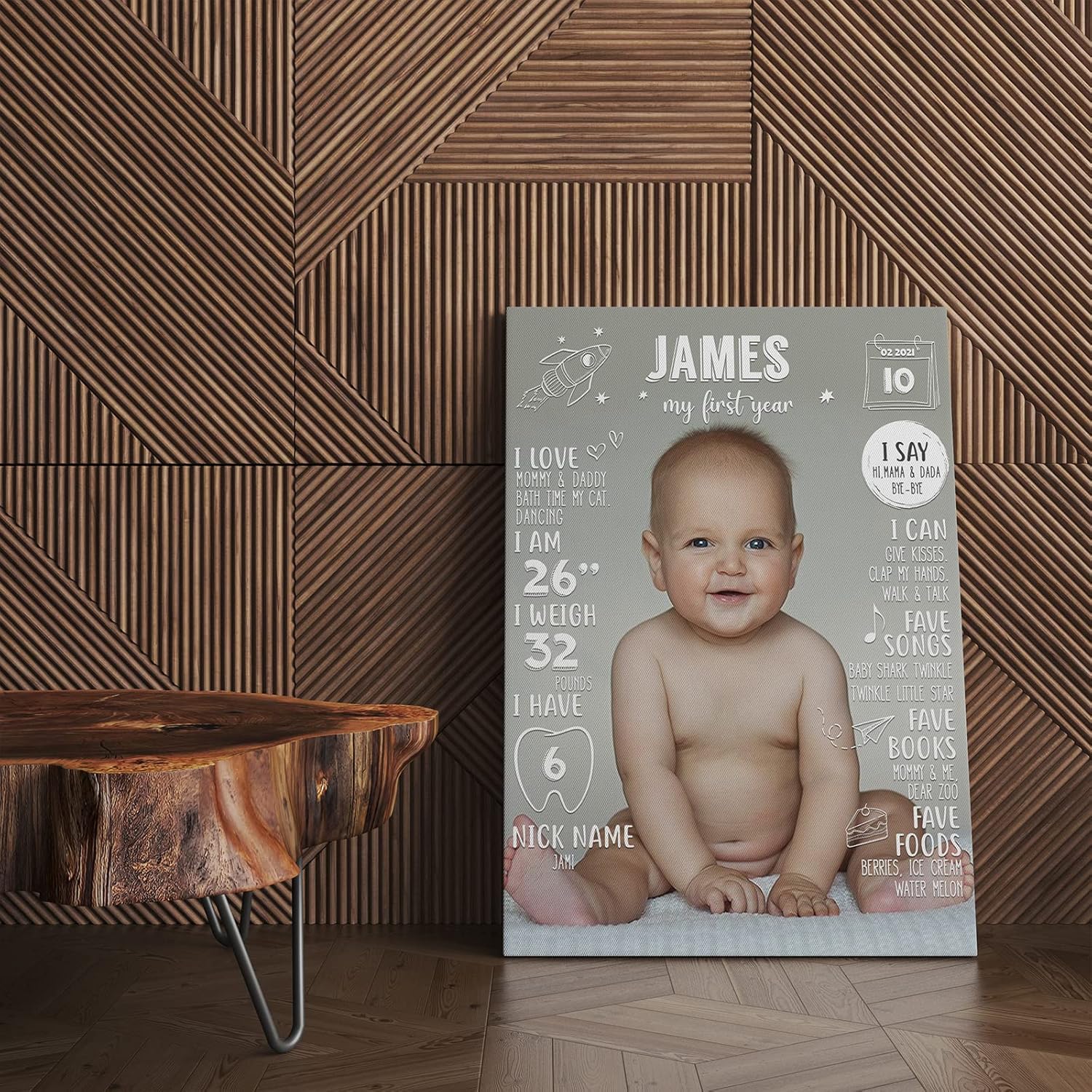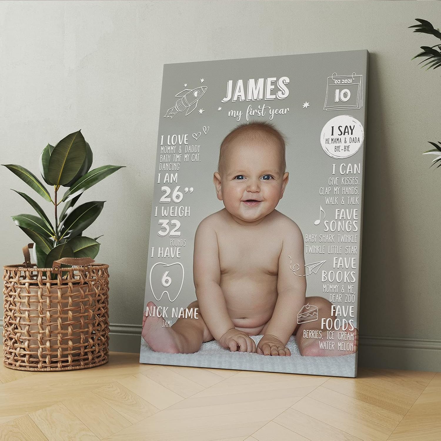 Thoughtful Gift Idea: The Custom, My First Birthday Milestone Framed Canvas, makes a heartwarming gift for new parents, grandparents, godparents, or anyone who wants to cherish the unforgettable moments of a baby’s first year.
