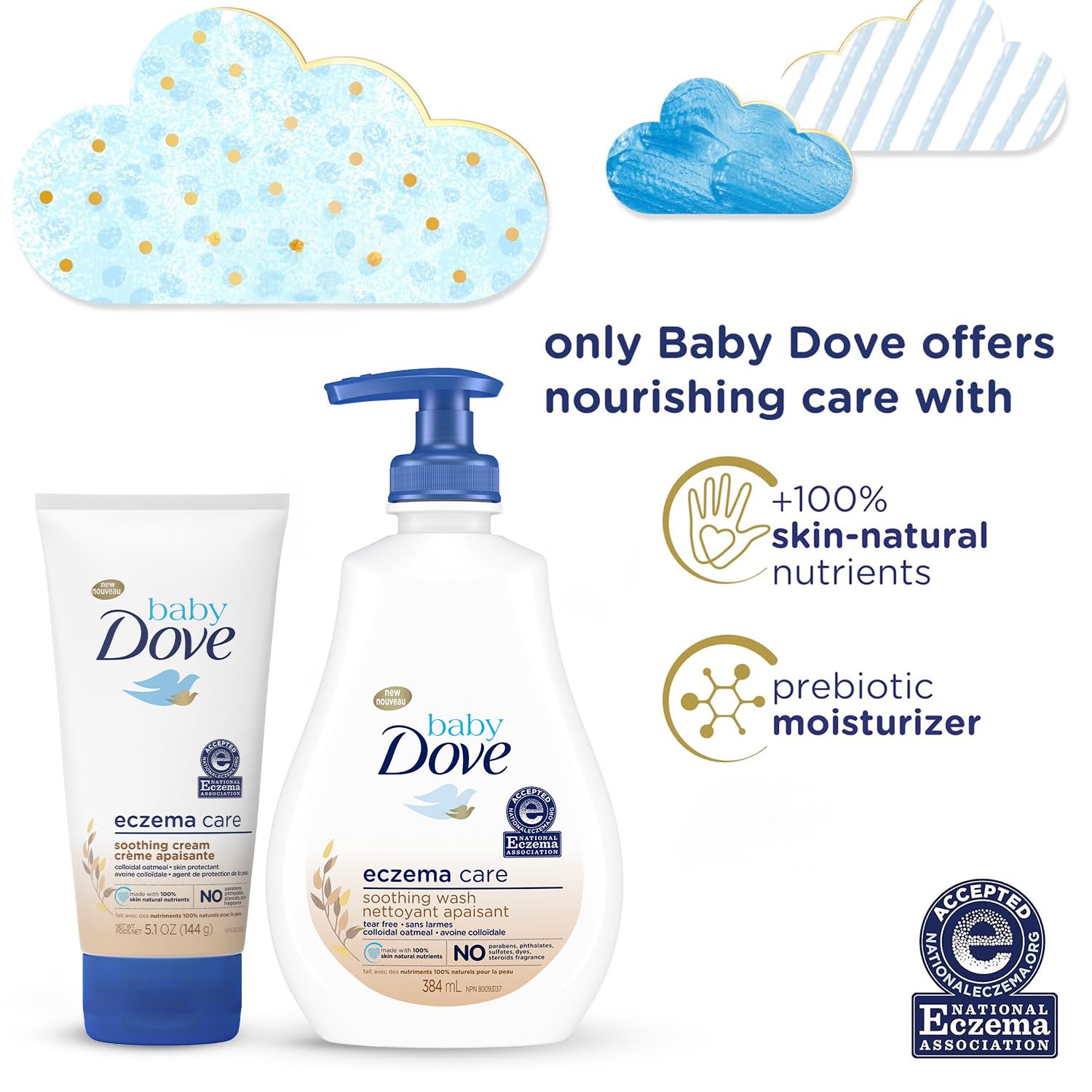 SOOTHING BABY WASH: The Dove Derma Care Soothing Wash (13 Oz) helps soothe baby’s skin with colloidal oatmeal, prebiotic moisture, and 100% skin-natural nutrients.