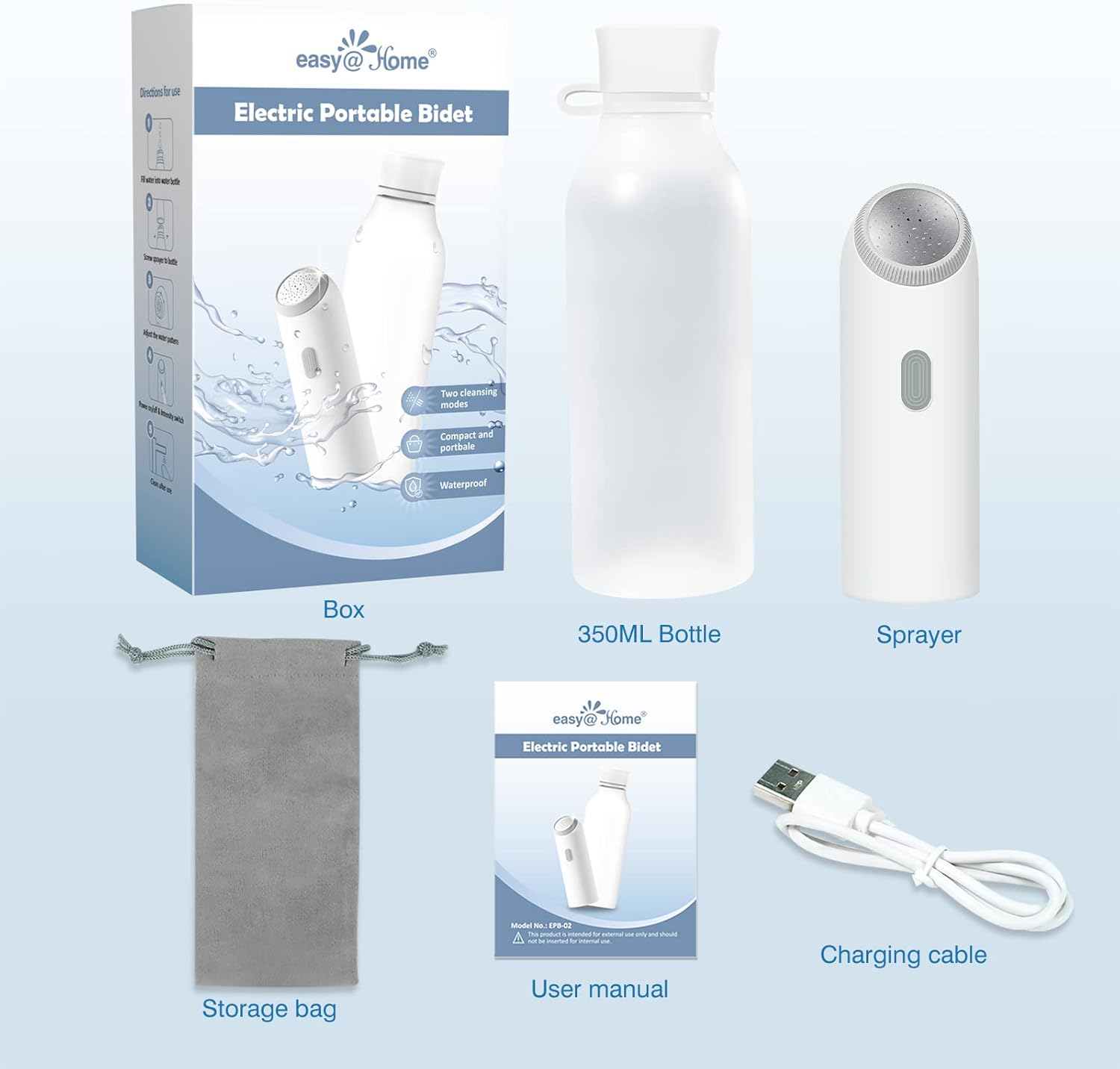 Easy@Home Portable Electric Handheld Travel Bidet: USB Rechargeable Mini Bidet Sprayer for Personal Hygiene Postpartum & Baby Care Perineal & Hemorrhoid Treatment – 4 Water Flow Types | 350ml