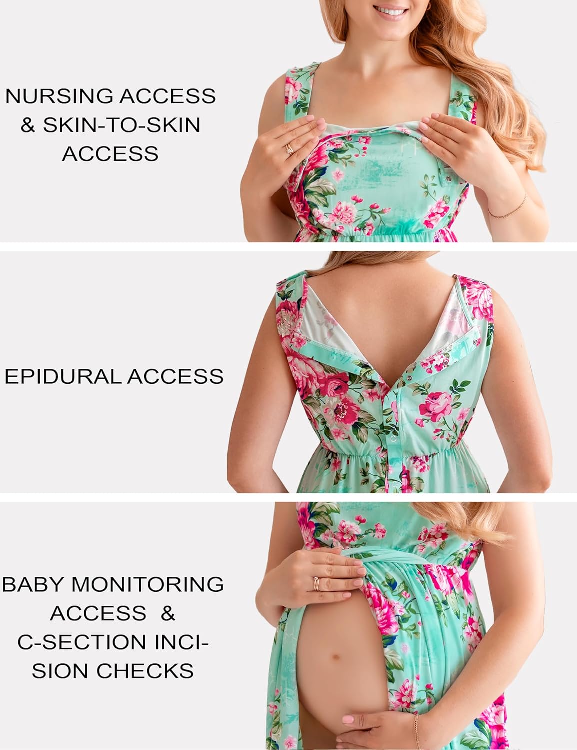 Prepare for one of life’s most important moments with our ultra-soft and practical hospital gowns for women labor delivery. Designed with comfort and functionality in mind, this delivery gown for hospital maternity provides full coverage while allowing easy access for doctors and nurses during your stay. Unlike standard gowns, our hospital gown labor and delivery style is made from breathable fabric and features snaps for quick access during nursing or medical checks. Soft, lightweight, and stylish, it keeps you comfortable while still looking put together. This versatile nursing gown is a must-have in your hospital bag essentials for mom, offering comfort, convenience, and confidence throughout your hospital stay. With thoughtful details and an easy-care design, it’s also one of the postpartum essentials must haves you’ll continue to love at home. Add it to your mommy bag for hospital essentials or gift it to an expecting mom for a baby shower or baby registry.