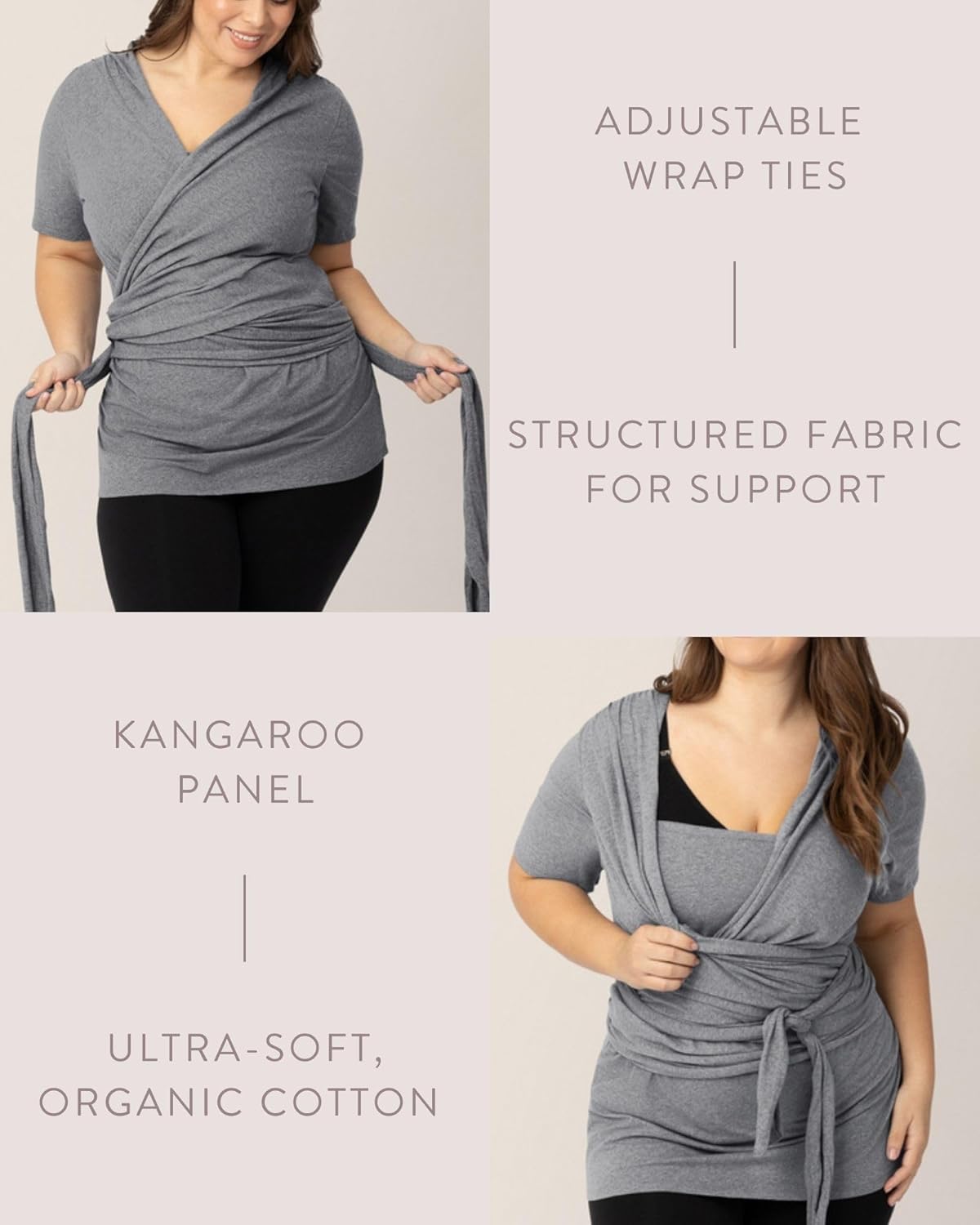 KEEP BABY CLOSE – This unique kangaroo shirt for mom and baby features a center panel and adjustable ties that wrap around your torso to securely hold baby against you for skin to skin time.