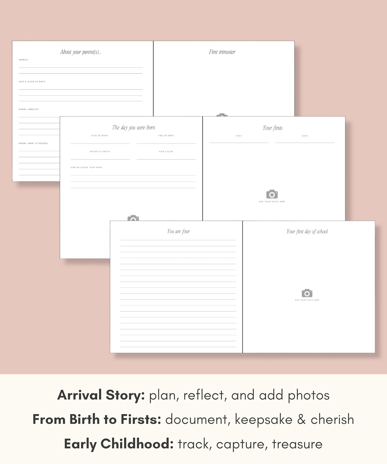 Treasure every moment of your baby’s journey with this first year baby book, doubling as a baby scrapbook album or baby album photo book. The perfect way to cherish memories in a baby book first year or rainbow baby memory book for newborn.