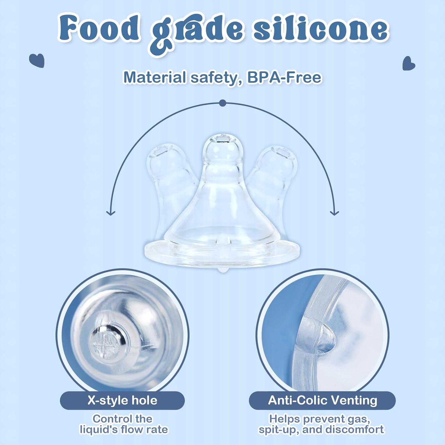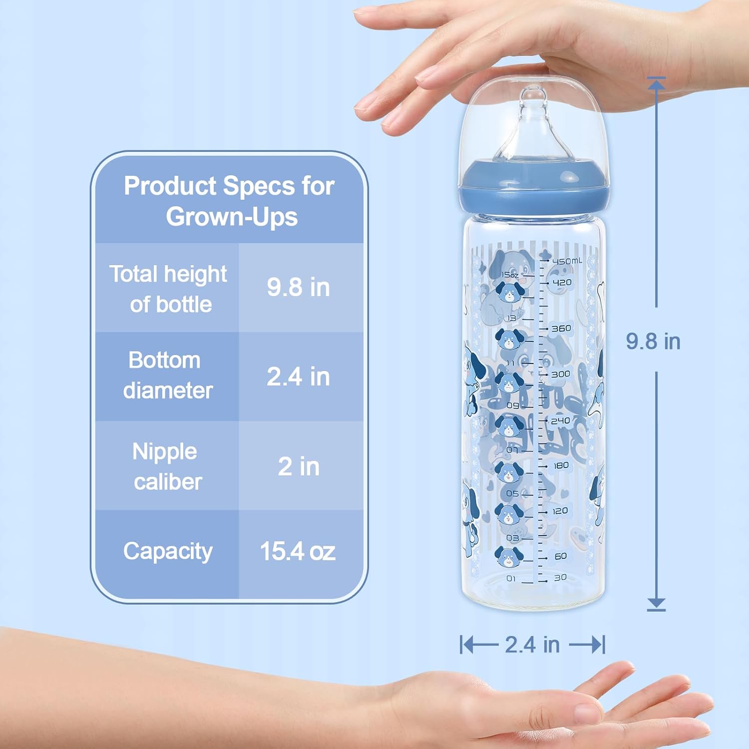 Fast Flow & Easy to Clean: Our wide-mouth design not only makes filling and cleaning a breeze but also pairs perfectly with our fast-flow vented silicone nipple, featuring an X-style hole. This ensures a smooth, uninterrupted flow—ideal for those who prefer a quicker, more satisfying feeding experience. The innovative dust cap keeps your bottle hygienic, and it’s compatible with “LittleForBig” Adult Bottle Nipples for added convenience.