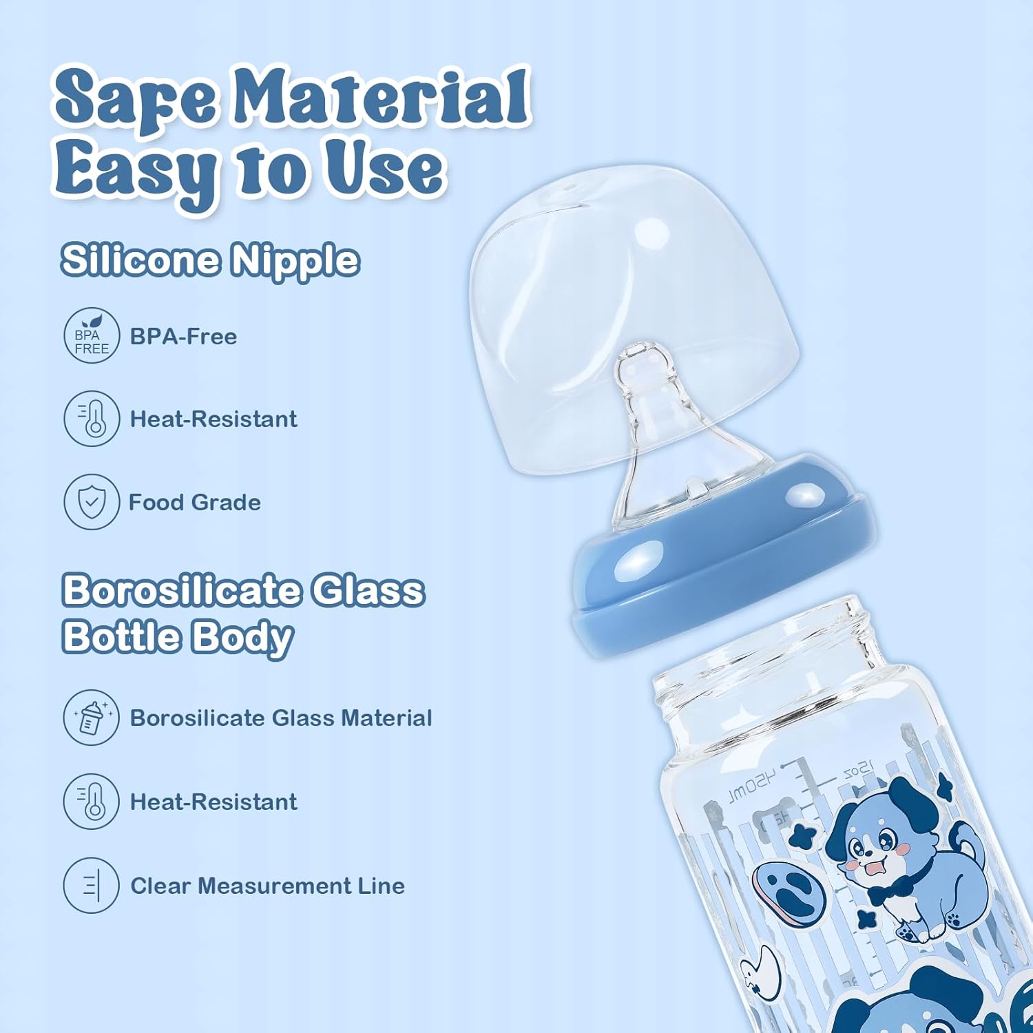 Premium Quality Material: Enjoy the safety and purity of our all-glass, BPA-Free bottle, designed for long-lasting use and a premium feeding experience. The smooth, ergonomic shape fits comfortably in your hands, while the fast-flow nipple delivers an optimal, comforting sip every time. It’s not just a bottle – it’s a perfect blend of charm and functionality.