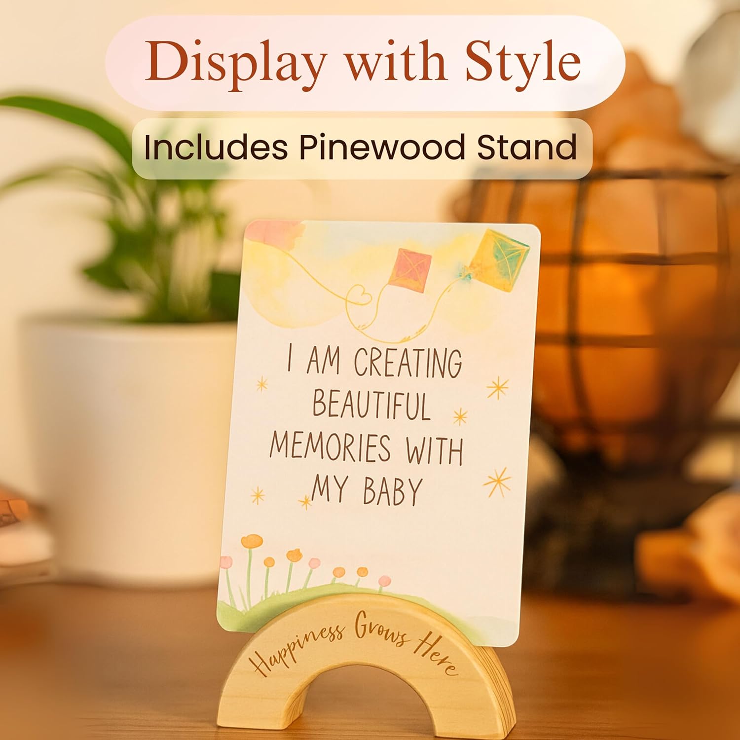 Stylish Display with Handcrafted Pinewood Stand & Versatile Support for Busy Moms – Showcase your affirmations in style with our individually crafted pinewood stand, perfect for adding a touch of natural elegance to any new mama’s space. Whether at home, in the office, or during therapy sessions, these versatile cards provide continuous support and encouragement as you navigate the journey of motherhood and postpartum recovery