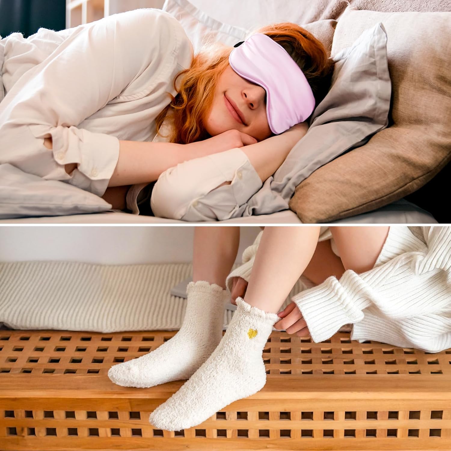 New mom care pakage:This new mom gift box can help make the new mom feel comfortable, cozy, and supported during the early stages of motherhood, Our eye masks for sleep are naturally breathable to deliver a faster and sweeter sleep while keeping eyes relaxed,Our socks crafted from high-quality knit fabrics thatwearing sleep socks to bed promotes longer and more restful sleep, resulting in a refreshed and revitalized morning.Knitted tulips are very cute and can be placed on the table as decoration to adjust the mood