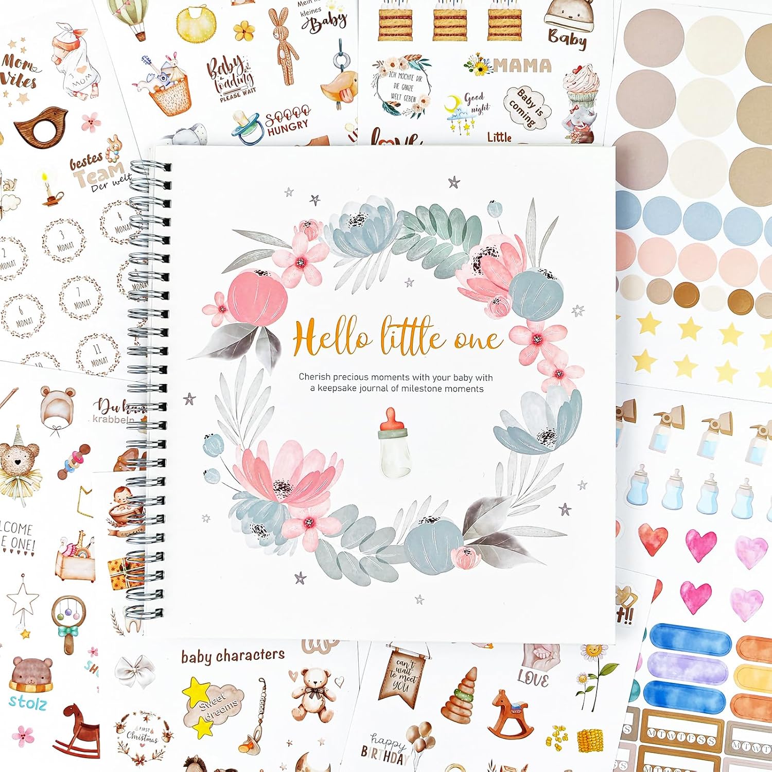 Detailed record of baby’s growth:The baby memory book set with lovely illustrations &4 sheets lovely stickers,When mother record her baby’s growth moments, She can use stickers to add more details.Don’t worry about complicated text, as the pages are filled with simple prompts to assist mom in recording your baby’s milestones. This baby memory book is a thoughtful gift for mom that she will love it.What a wonderful idea to gift this baby photo albums at a baby shower or as pregnancy gifts!