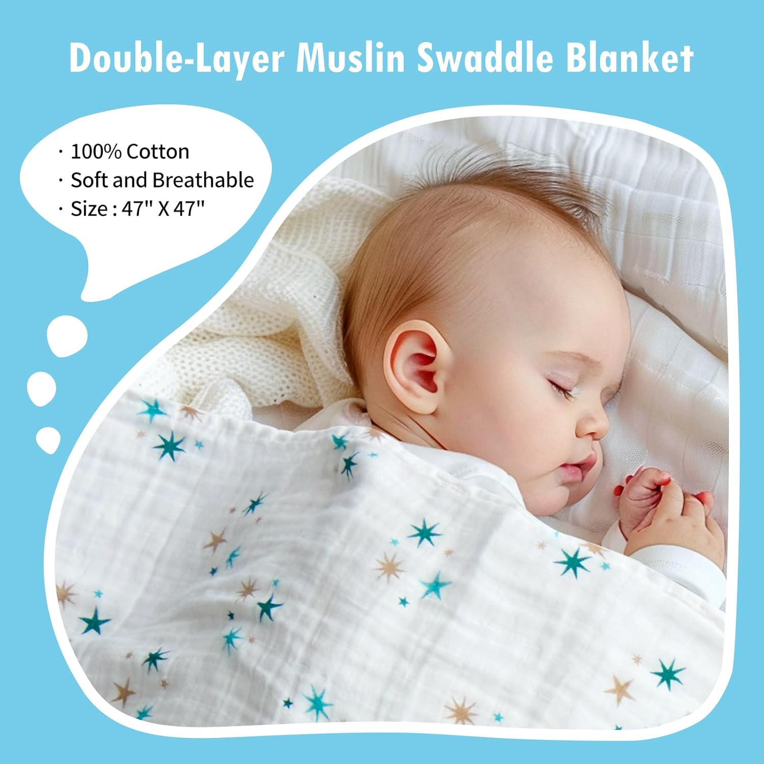 💖【SOFT MUSLIIN SWADDLE BLANKET】When comes to a welcome baby gift, swaddle blanket is the most popular one. Our muslin swaddle blankets is made of 100% cotton, breathable, comfortable, and skin-friendly to baby skin. With a size of 47″ X 47″, it is large enough to easily wrap a baby. It can also be used as a receiving blanket, cuddle blanket, nursing cover, sunscreen for strollers, burp cloth, car seat cover, play mat, changing pad, or mini crib sheet.