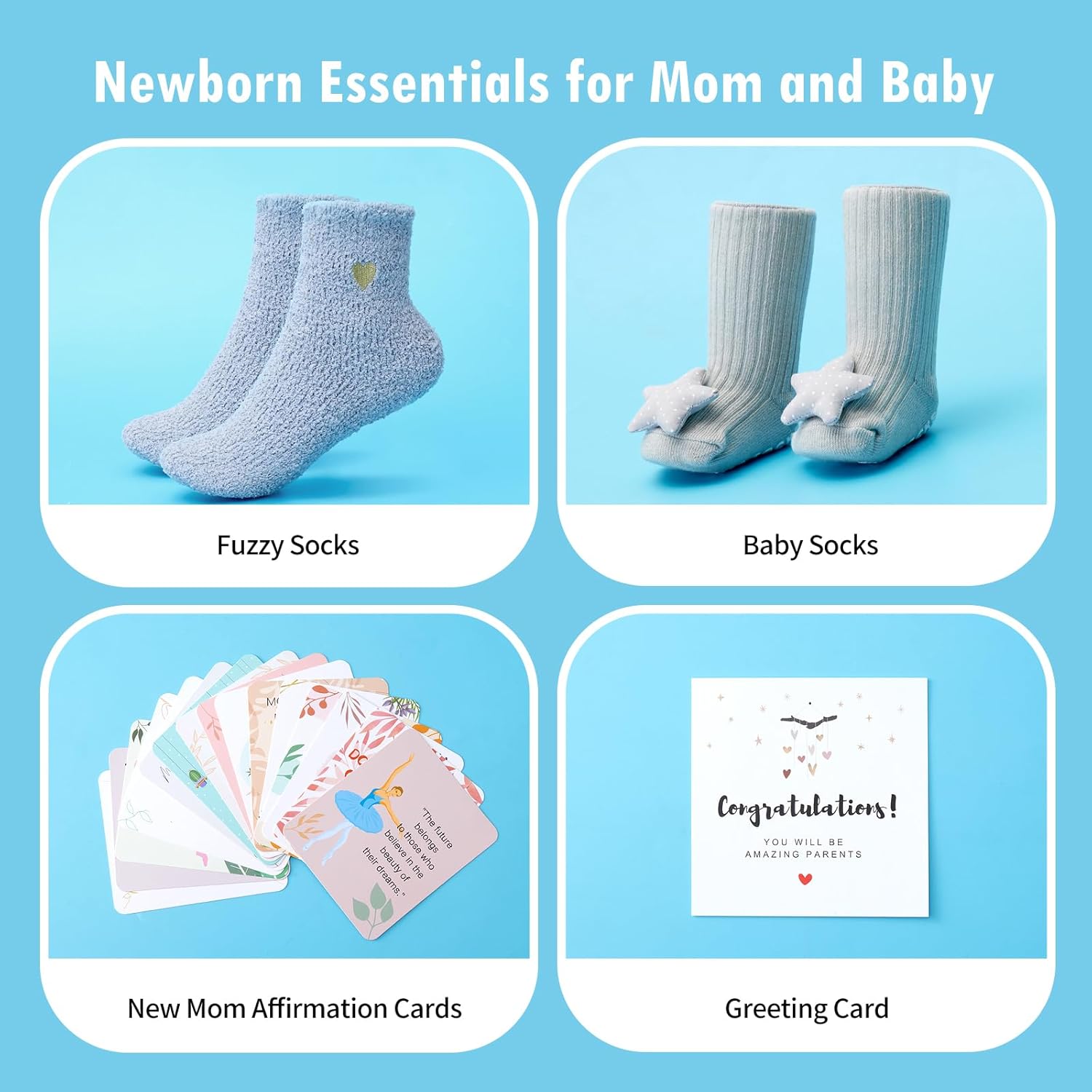 💖【 NEWBORN ESSENTIALS MUST HAVES】 The adorable baby onesie and baby socks are made of 100% natural cotton, very soft and breathable, perfect for both boys and girls. The soft fuzzy mom socks provides maximum comfort and warmth for new moms’ feet. The 16 pcs affirmation cards are design to help mamas in their new journey, to encourage and help them embrace the changes in their lives & body, reminding them to enjoy life as is. Those are postpartum essentials for women after birth.