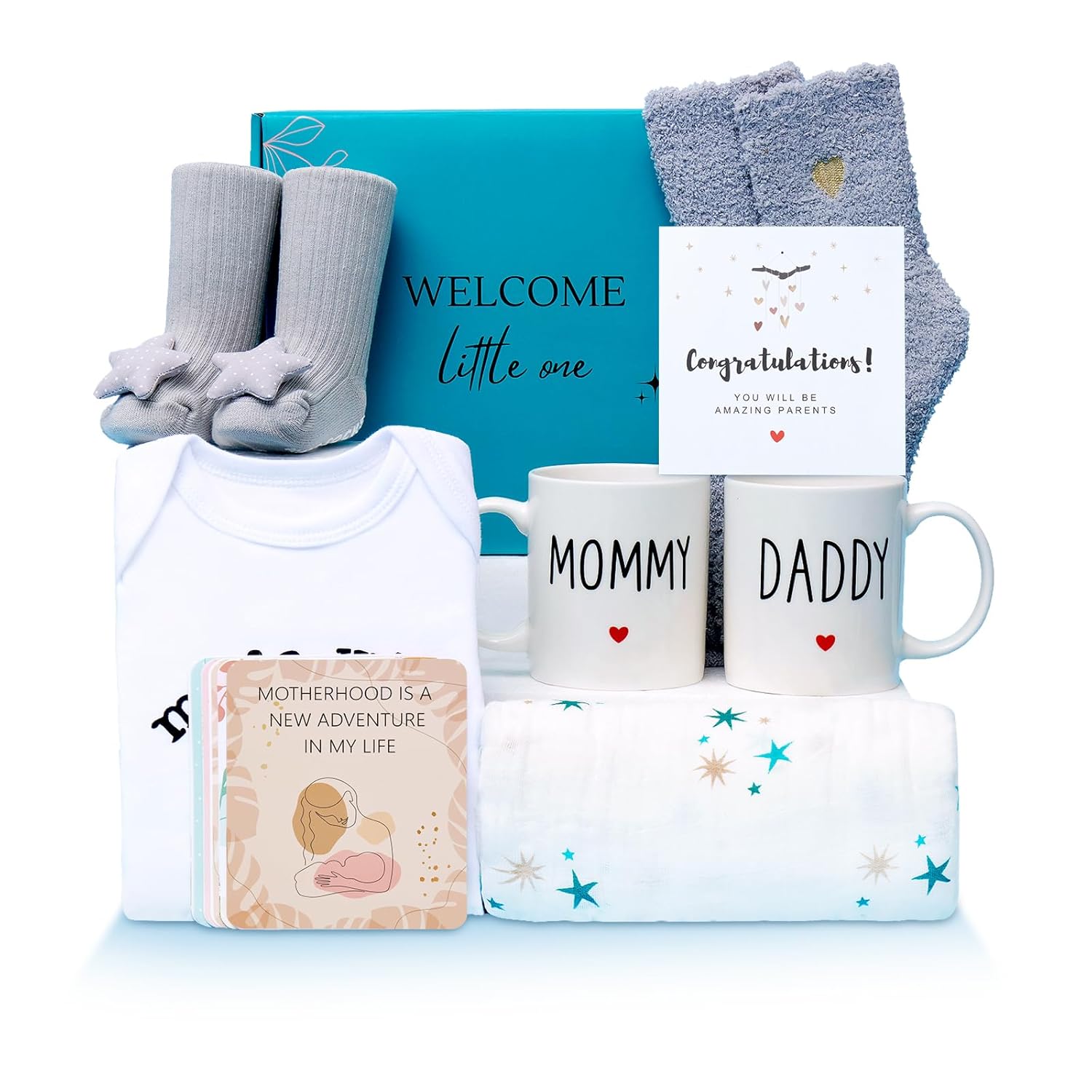 💖【WAHT IS IN THE PREGNANCY GIFTS BASKET】The 8-piece mom to be gift is a practical and thoughtful choice, featuring a 12oz mug set, baby swaddle blanket, baby onesie(0-6 months), fuzzy socks, baby socks(0-6 months), mom affirmation cards and a greeting card. This adorable gift box is designed to make new mom gifts easy and express your blessing perfectly. Add it to the cart and send a heartfelt message on the gift card to celebrate the special day.