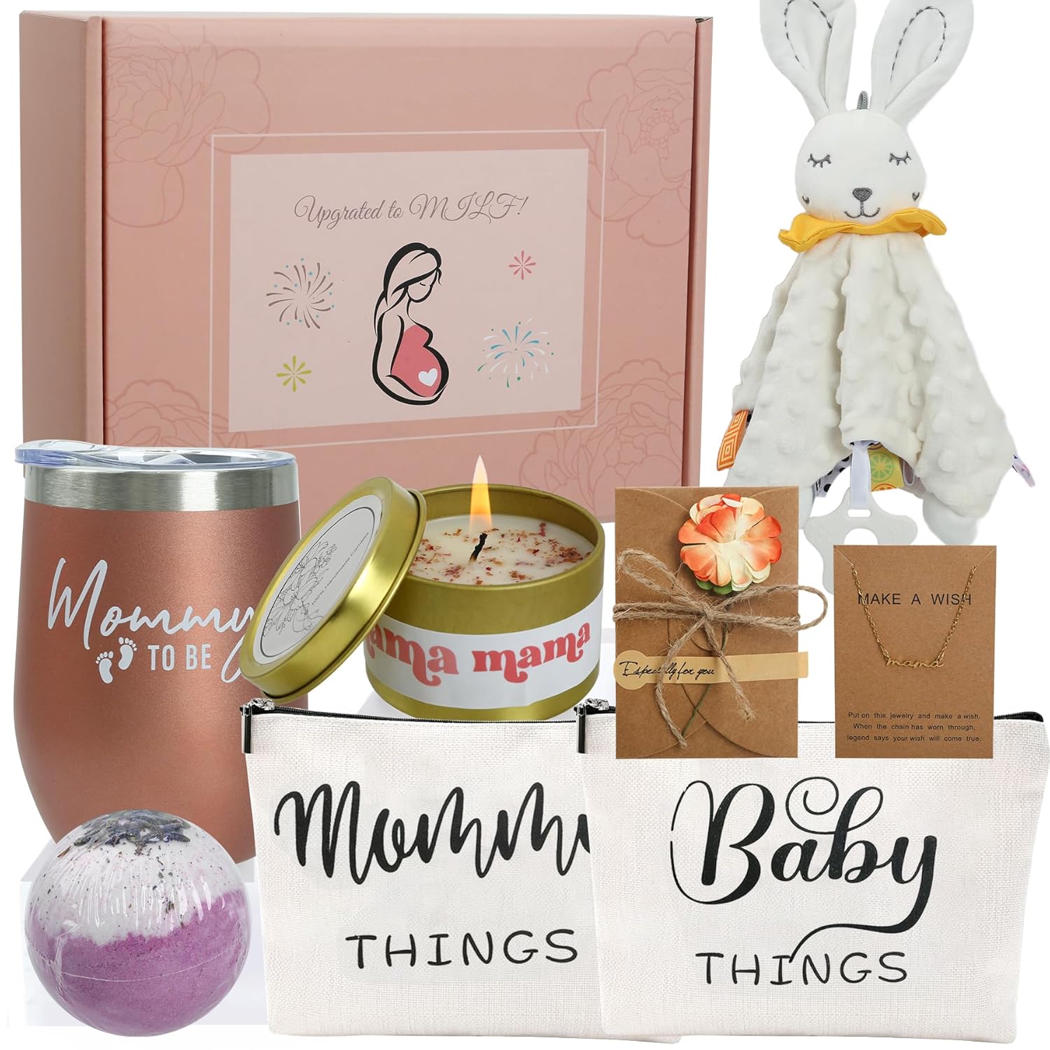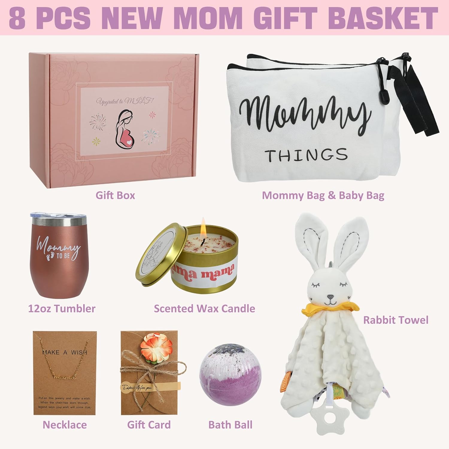 NEW MOM CARE PACKAGE AFTER BABY – This new mommy care package includes all the essentials a new mom needs to relax and recharge. The postpartum care package include a 12oz ‘mommy to be’ tumbler, a gift card, a scented wax candle, a mommy bag and a baby bag, a bath ball, a rabbit towel, a necklace and a gift box. It’s not just a gift—it’s an experience designed to offer a perfect balance of self-care and functionality. Make her feel special and appreciated during this wonderful chapter of her life with this new mom gift that goes beyond just the basics.