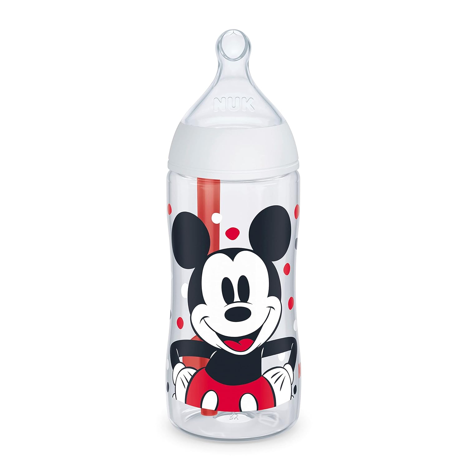 The NUK Smooth Flow™ Pro Anti-Colic Baby Bottle features an anti-colic venting system proven to reduce baby colic symptoms of gas, extensive crying, and reflux. The advanced venting system minimizes air bubbles in the milk so baby swallows less air, reducing spit-up and burping. The NUK Smooth Flow™ Pro Anti-Colic Bottle has fewer pieces than the leading anti-colic bottle*, so it’s easier to prep, assemble, and clean. And because the nipple and collar is only one piece, there are no leaks, guaranteed. SafeTemp™ technology features a blue thermometer indicator that fades when milk is too hot and reappears when milk has cooled and is safe to drink. The newborn bottle’s unique nipple design allows baby to control the flow of milk with their suction strength, delivering comfortable, colic-free feeding. Our Anti-Colic Baby Bottle is BPA-free and dishwasher-safe. *based on NPD Unit Sales L52 2021