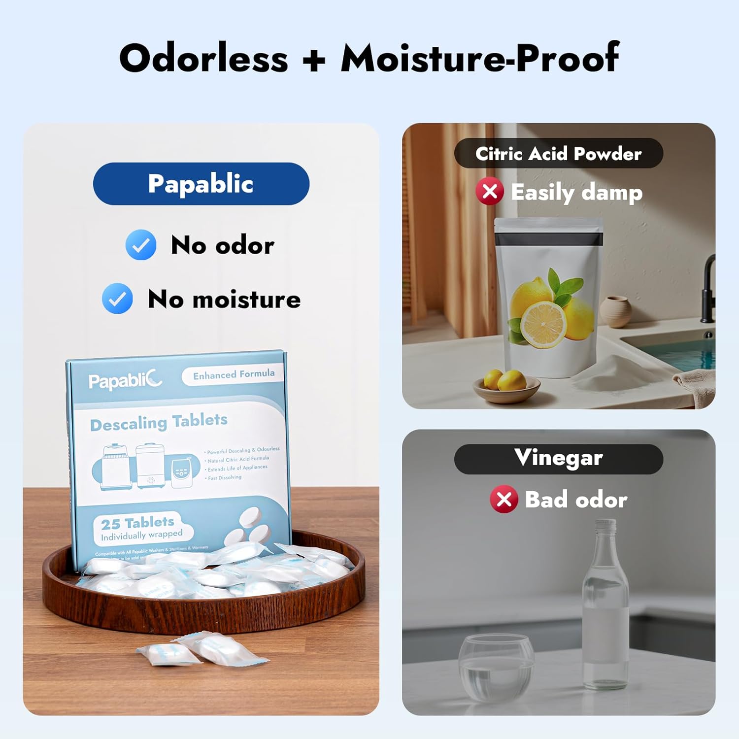 𝐄𝐱𝐭𝐞𝐧𝐝𝐬 𝐀𝐩𝐩𝐥𝐢𝐚𝐧𝐜𝐞 𝐋𝐢𝐟𝐞𝐬𝐩𝐚𝐧 & 𝐏𝐫𝐨𝐭𝐞𝐜𝐭𝐬 𝐂𝐨𝐦𝐩𝐨𝐧𝐞𝐧𝐭𝐬:Regular descaling prevents mineral buildup, corrosion, and clogs that can damage internal parts. Protects heating elements and extends the service life of your baby appliances.
