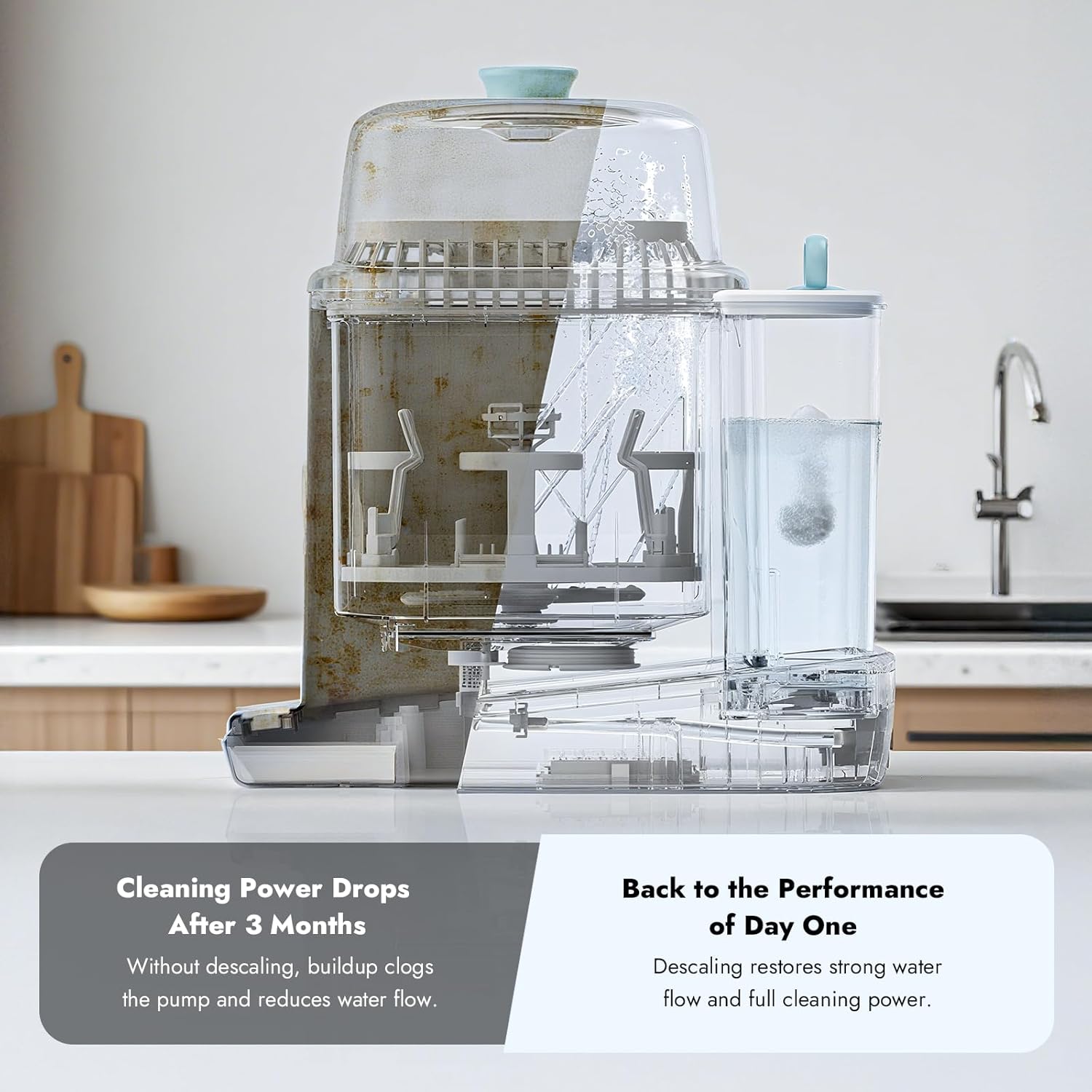 𝐃𝐞𝐞𝐩 𝐂𝐥𝐞𝐚𝐧𝐢𝐧𝐠 – 𝐑𝐞𝐦𝐨𝐯𝐞𝐬 𝐌𝐢𝐥𝐤 & 𝐋𝐢𝐦𝐞𝐬𝐜𝐚𝐥𝐞 𝐑𝐞𝐬𝐢𝐝𝐮𝐞:Effectively breaks down stubborn limescale, calcium deposits, and softens tough milk stains. Keep spray arms and internal tubing clear to restore full cleaning performance of your bottle washer and warmer.