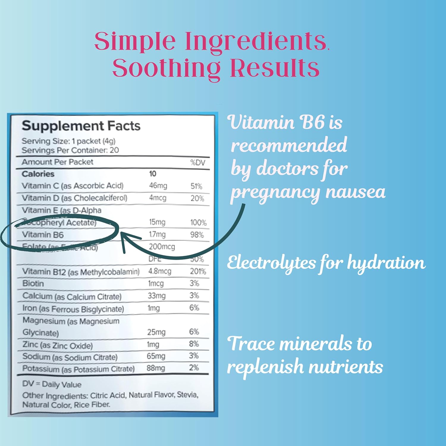 Doctor-Developed: Created by a doctor dedicated to supporting women during pregnancy, this is expertly formulated to address nutrient deficiency and dehydration related to morning sickness.