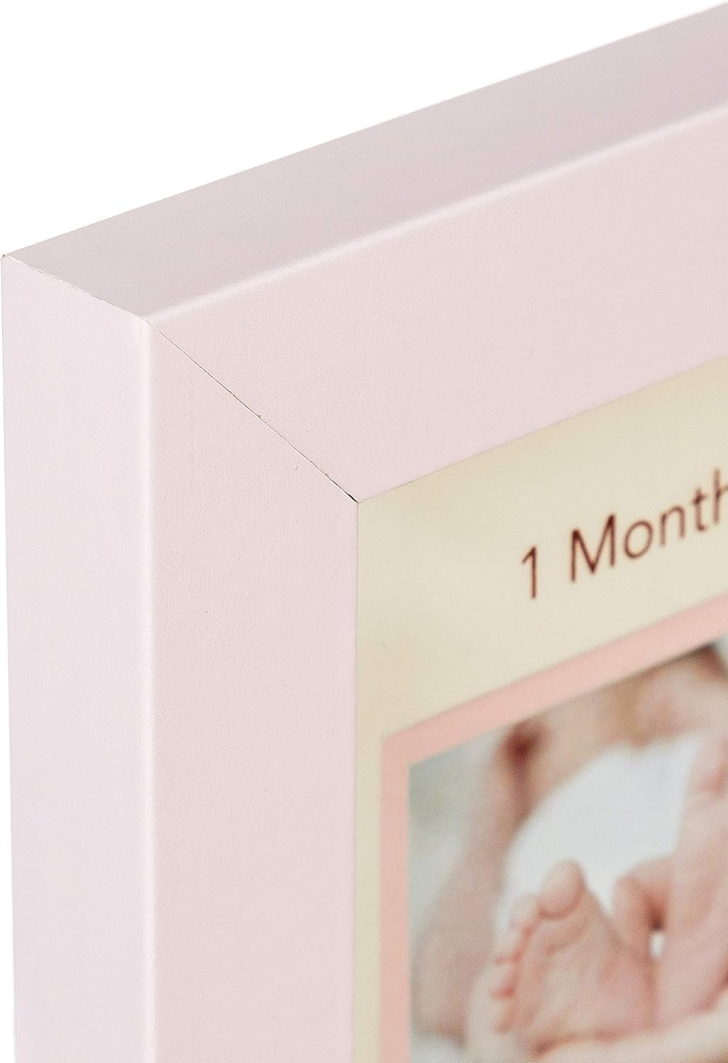 WOOD SIDE ORBIS First Year Newborn Baby Collage Keepsake Picture Frame for Photo Memories with Double Beige Mat and Twelve 2.5×2.5 Slots – Pink