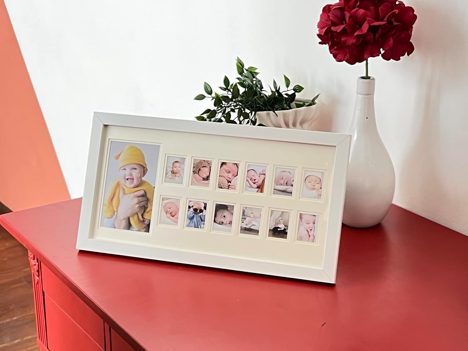 Customers find the picture frame looks great and offers good value for money, with one mentioning it’s perfect for 1st year monthly photos. However, the quality receives mixed feedback, with some loving it while others find it terrible. Moreover, the frame is not very sturdy, and customers report issues with the glass material, with one noting it’s actually plastic rather than glass. Additionally, one customer mentions receiving a broken frame.