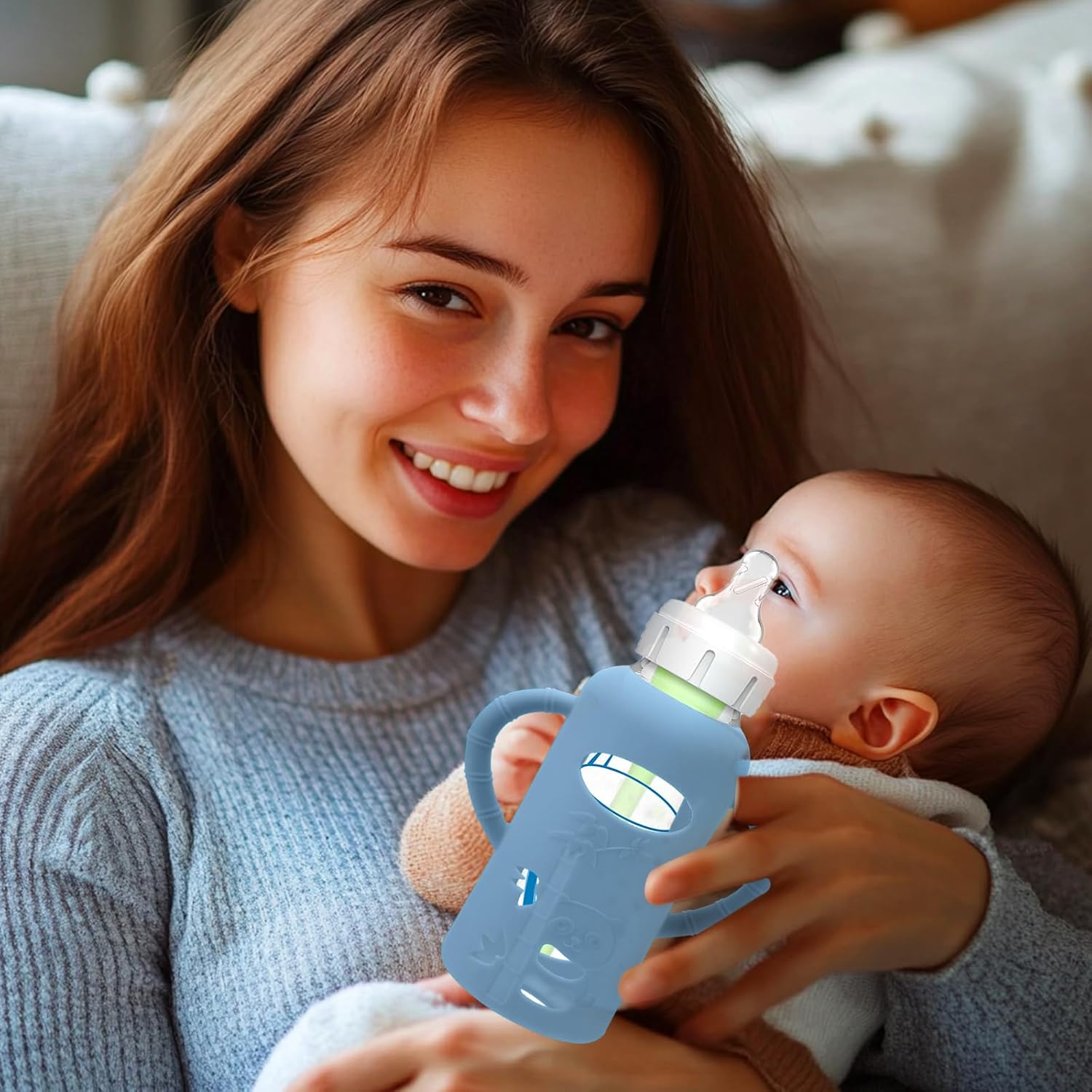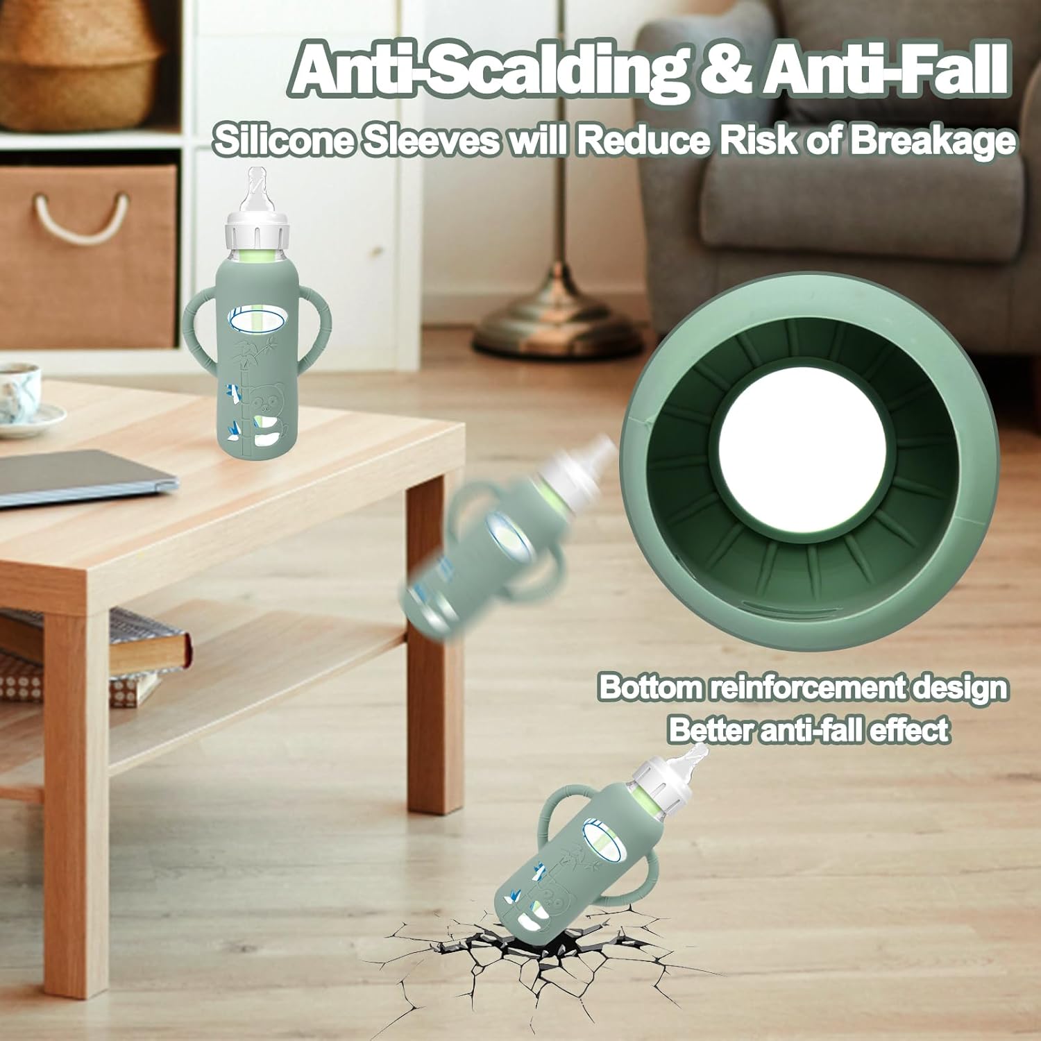 Unique Designed for Baby Bottles – The silicone sleeves for dr brown bottles can against drop down,bumps and scratches. These are a must essential product for using glass baby bottles. They provide a more sturdy protection for glass baby bottle from breaking if dropped, which also unique handle design shape make it easier to grip and hold