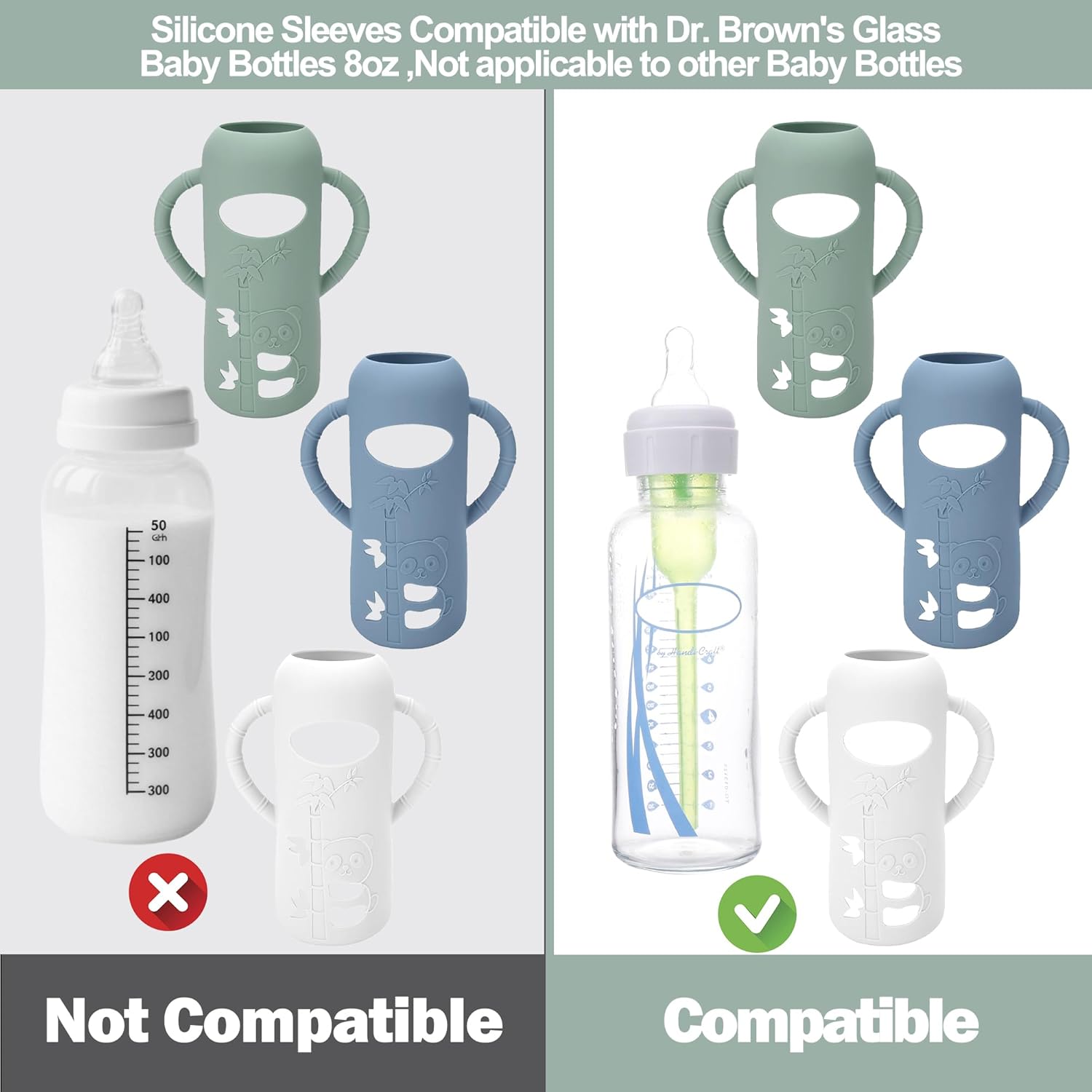 The Tips: The baby bottle silicone sleeve is compatible with Dr. Brown’s Glass baby Bottles 8 oz/240 ml, (Other series products cannot be adapted)