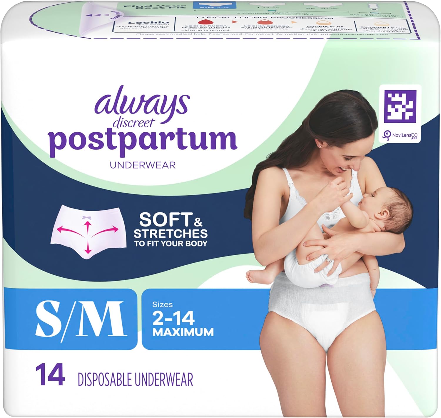 Looking for maximum postpartum protection that is surprisingly underwear like and comfortable? Choose Always Discreet Postpartum Underwear for sensitive skin protection for postpartum bleeding, discharge, lochia and bladder protection that cares for skin. Its super absorbent RapidDRY core offers protection against leaks and cares for sensitive skin by turning liquid to gel. The underwear helps prevent moisture build-up and gives you up to 100% leak-free protection that lasts up to 12 hours. Designed with postpartum sensitive skin in mind, the incredibly soft underwear has been dermatologically tested and made without fragrances, parabens, and latex*. Thanks to its 360° FormFit design, the incontinence underwear fits close to your body and smoothly under clothes, unlike bulky adult diapers. Always Discreet Postpartum Maximum Absorbency Underwear is ideal for the heaviest of leaks and postpartum bleeding or lochia. If you’re experiencing moderate or frequent leaks, try Always Discreet Moderate Postpartum pads. Make caring for sensitive skin a priority with Always Discreet Postpartum Underwear. Get up to 100% protection for you or your loved one to feel confident. * from natural rubber.