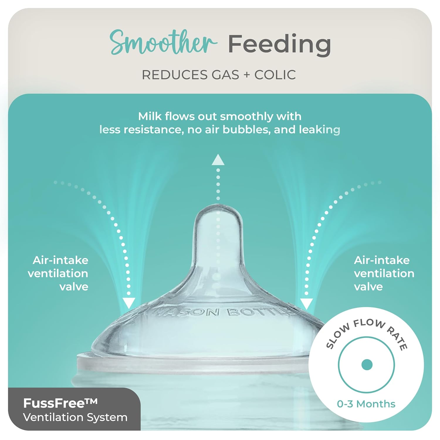 We aimed to cut plastics, prioritize sustainability with USA-made goods, and keep it minimal by choosing quality multi-use products. These values are embedded in Mason Bottle-, featuring a wide natural nipple for easy breast-to-bottle transitions.