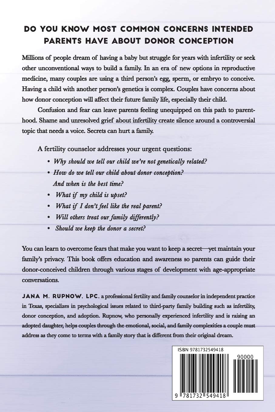 DO YOU KNOW—Most Common Concerns Intended Parents Have about Donor ConceptionMillions of people dream of having a baby but struggle for years with infertility or seek other unconventional ways to build a family. In an era of new options in reproductive medicine, many couples are using a third person’s egg, sperm, or embryo to conceive. Having a child with another person’s genetics is complex. Couples have concerns about how donor conception will affect their future family life, especially their child.Confusion and fear can leave parents feeling unequipped on this path to parenthood. Shame and unresolved grief about infertility create silence around a controversial topic that needs a voice. Secrets can hurt a family. A fertility counselor addresses your urgent questions:•Why should we tell our child we’re not genetically related?•How do we tell our child about donor conception? And when is the best time? •What if my child is upset?•What if I don’t feel like the real parent?•Will others treat our family differently?•Should we keep the donor a secret?You can learn to overcome fears that make you want to keep a secret—yet maintain your family’s privacy. This book offers education and awareness so parents can guide their donor-conceived children through various stages of development with age-appropriate conversations.