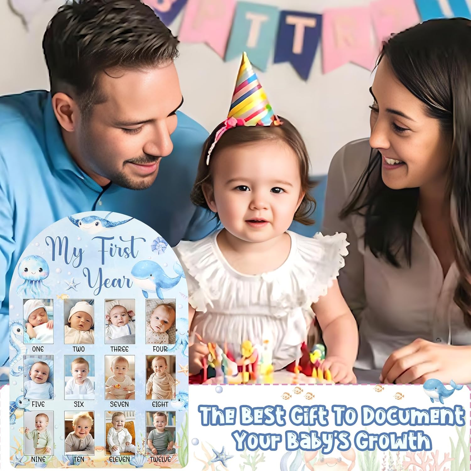 Widely Application: This sea animal my first year wooden frame can been decorated with baby’s 12 months birthday party and home, nursery. The photo display wood board also the perfect gift for baby first birthday, baby shower, expecting mother, new parent, mother’s day and more.